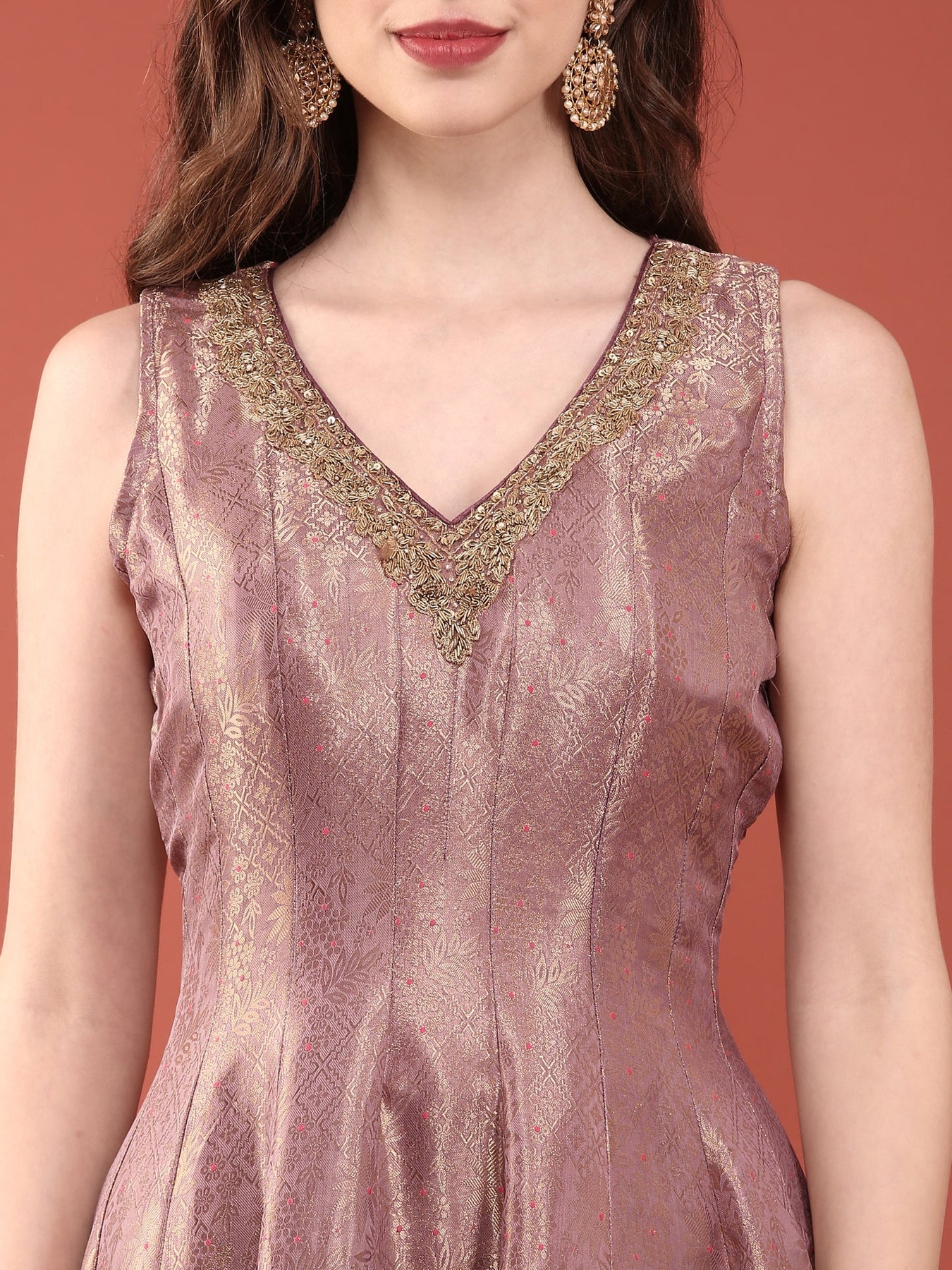 Elevate your ethnic wardrobe with this exquisite Lavender Banaras Silk Anarkali Set, a timeless piece that seamlessly blends traditional craftsmanship with contemporary elegance. Crafted from premium Banaras silk, this set features the iconic Anarkali silhouette with its gracefully flared hemline, offering both comfort and sophistication. The lavender hue provides a refined, versatile option suitable for festive occasions, celebrations, and formal gatherings. Intricate traditional weaving techniques showcase the richness of authentic Indian textile heritage. Perfect for those who appreciate quality fabrics and classic designs that transcend seasonal trends.