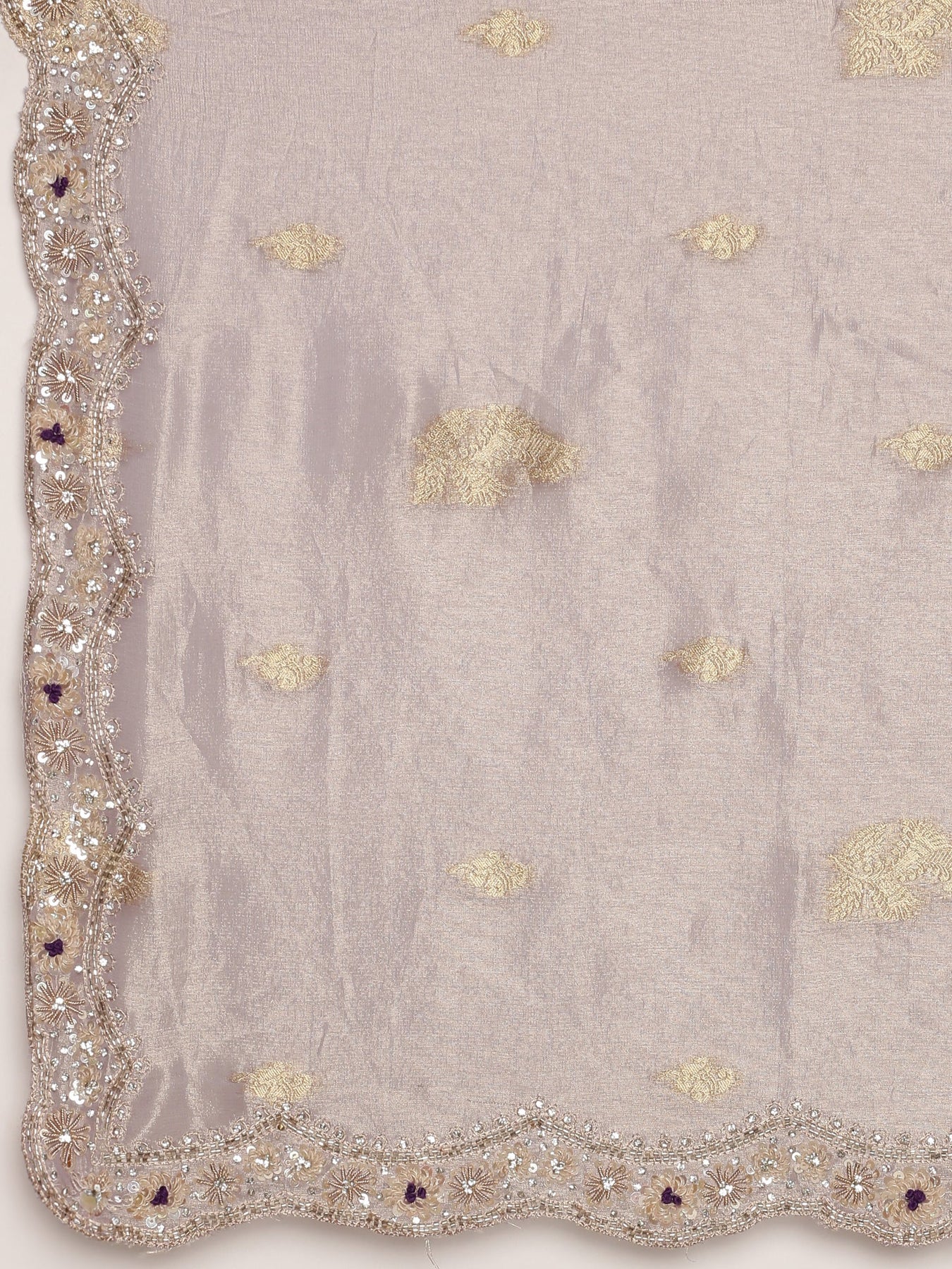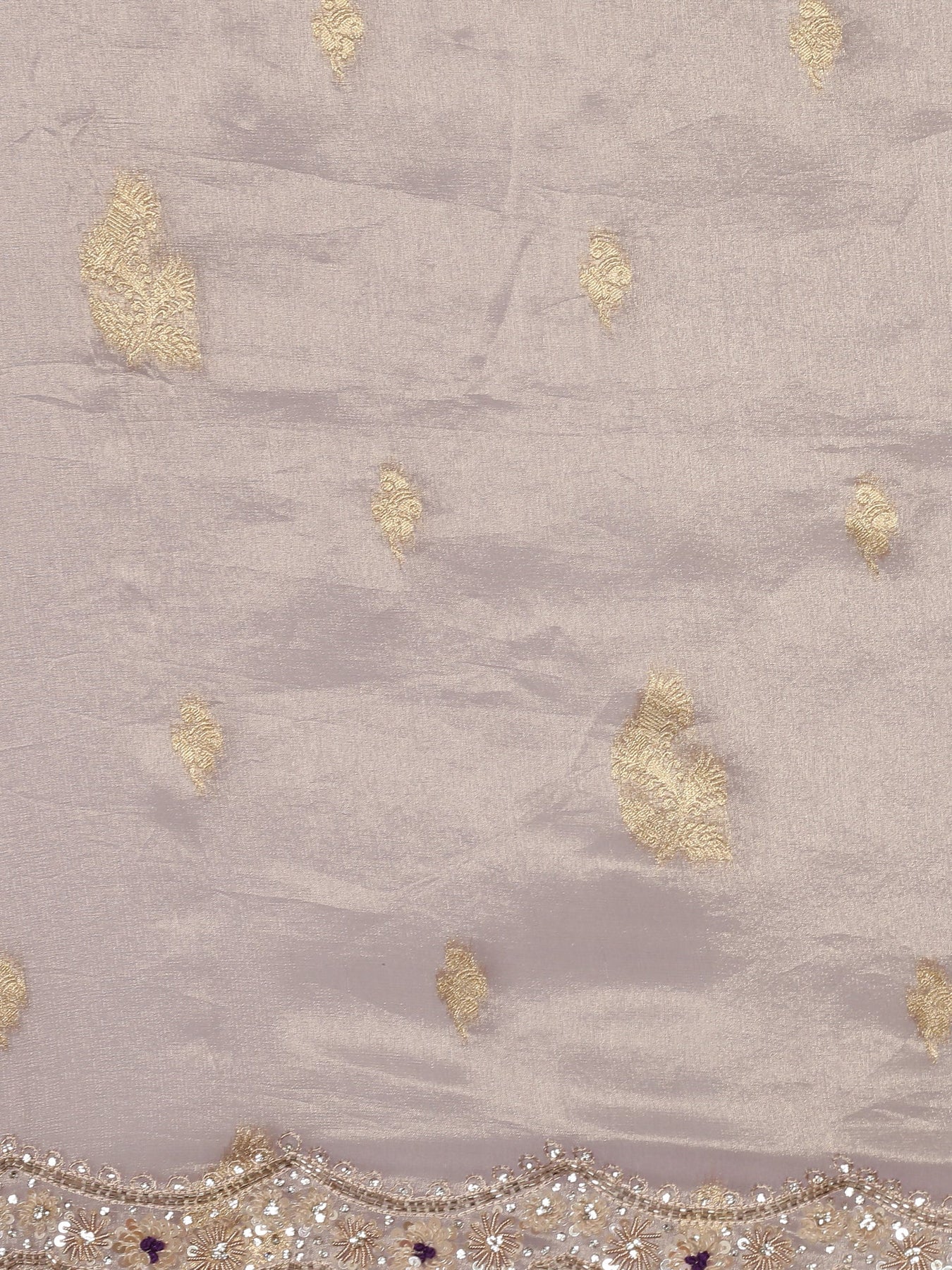 Lilac Tissue Weaved Saree With Stone Work Readymade Blouse