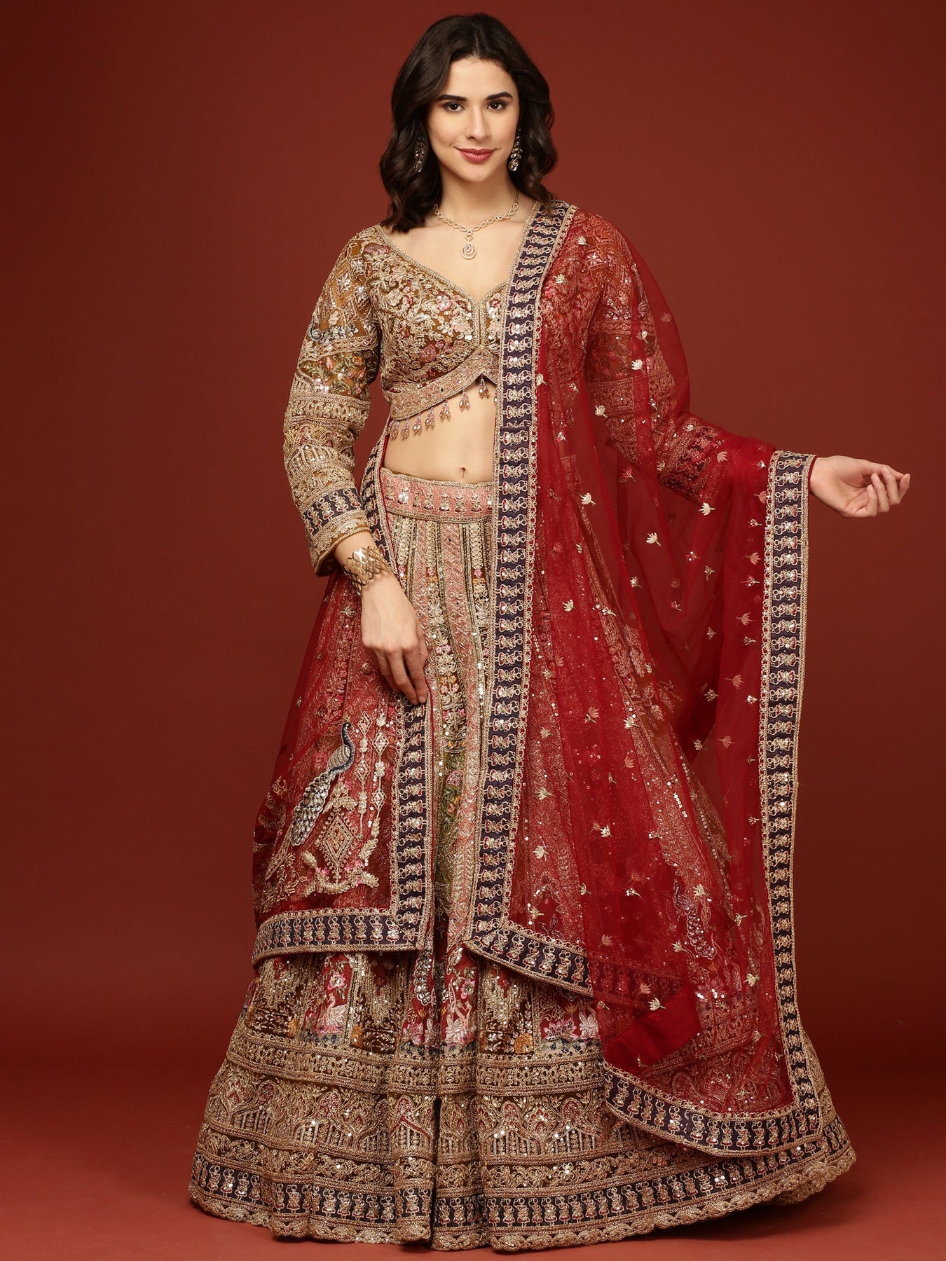 Elevate your ethnic wardrobe with this Mustard Nett Ghagra Set, exquisitely adorned with delicate hand embroidery floral motifs. Crafted from breathable nett fabric, it offers a graceful silhouette combined with intricate artistry. Perfect for festive occasions, this ensemble blends traditional elegance with contemporary charm, ensuring you stand out with understated sophistication.