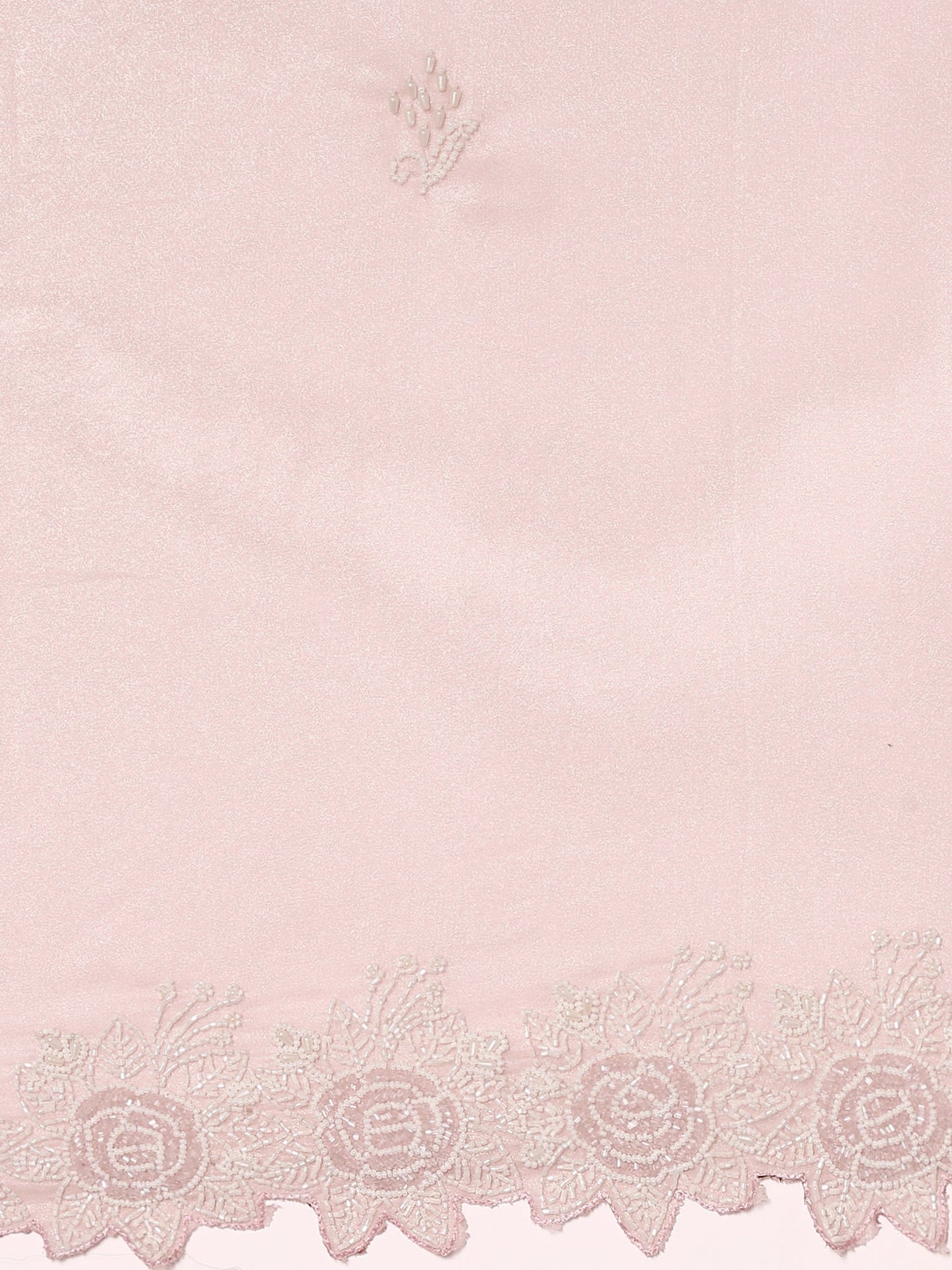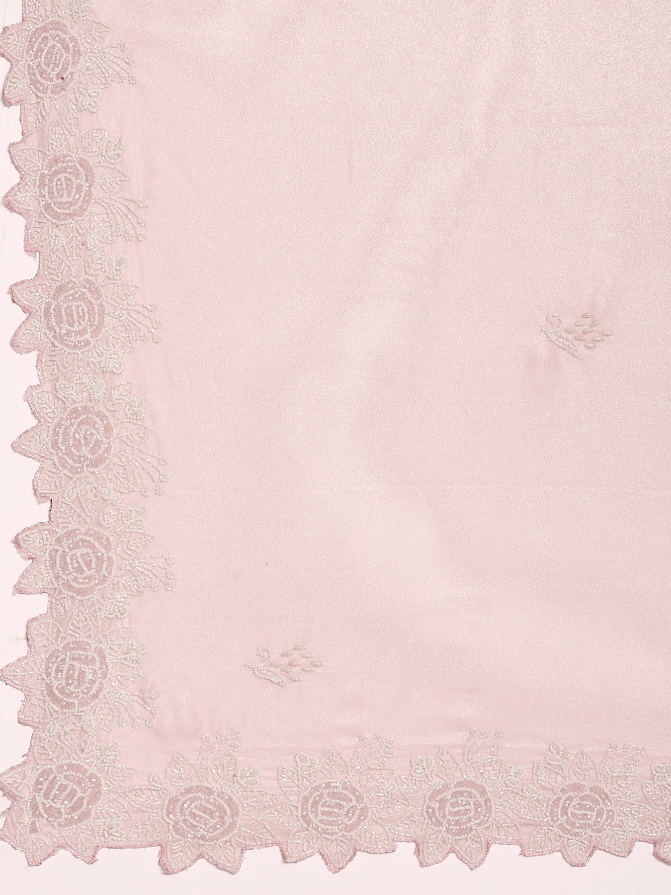 Embrace timeless elegance with this stunning pink organza saree, adorned with intricate stone and thread embroidery. The delicate organza fabric drapes beautifully, creating a graceful silhouette perfect for weddings, celebrations, and special occasions. Each embellishment is carefully crafted to add sparkle and sophistication to your ensemble.