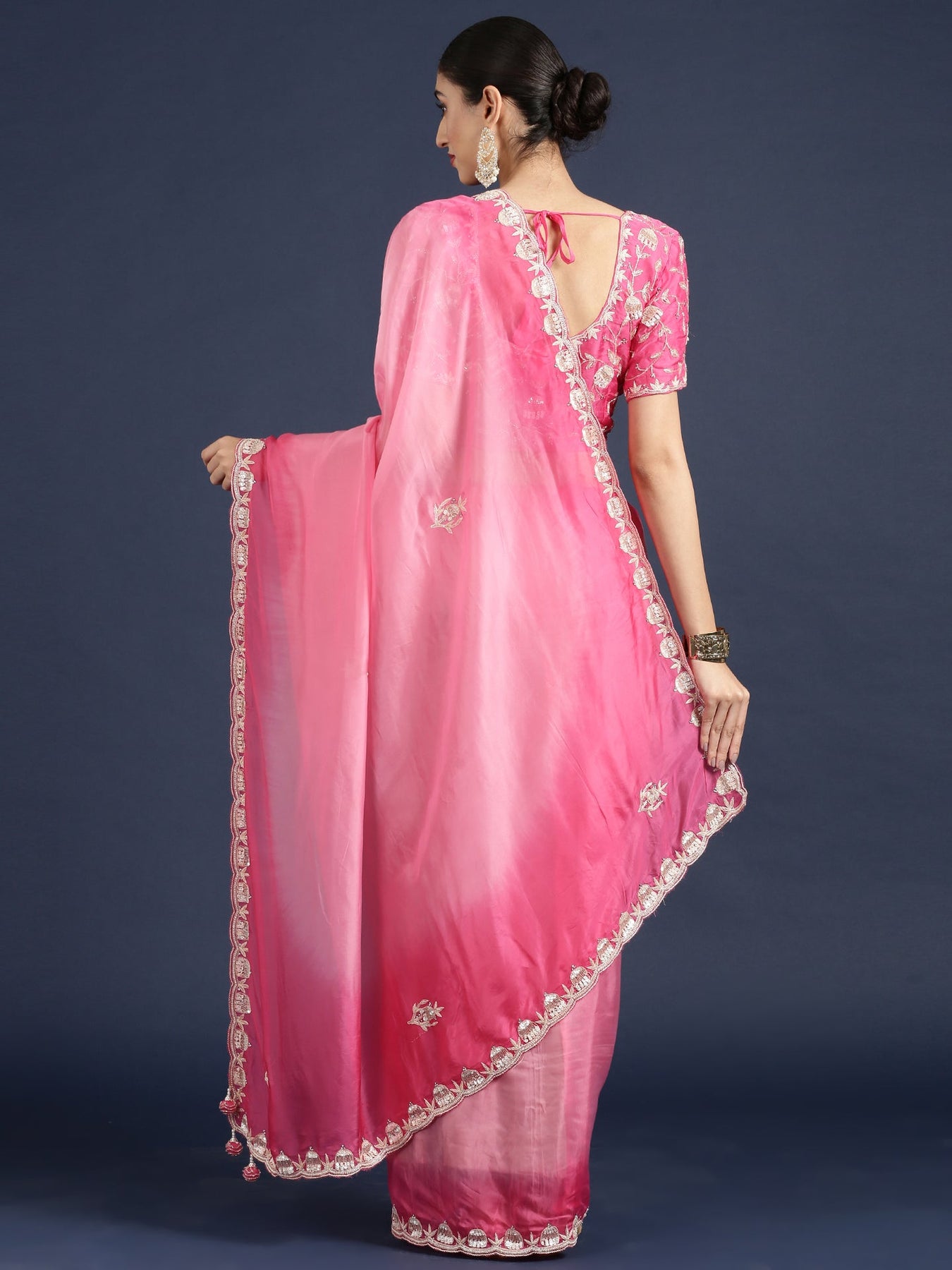 Elevate your elegance with this pink silk saree featuring exquisite stone work that adds a subtle sparkle to its rich fabric. Paired with a perfectly tailored readymade blouse, it offers a seamless blend of tradition and contemporary style. Ideal for festive occasions and celebrations, this ensemble ensures you stand out with graceful sophistication.
