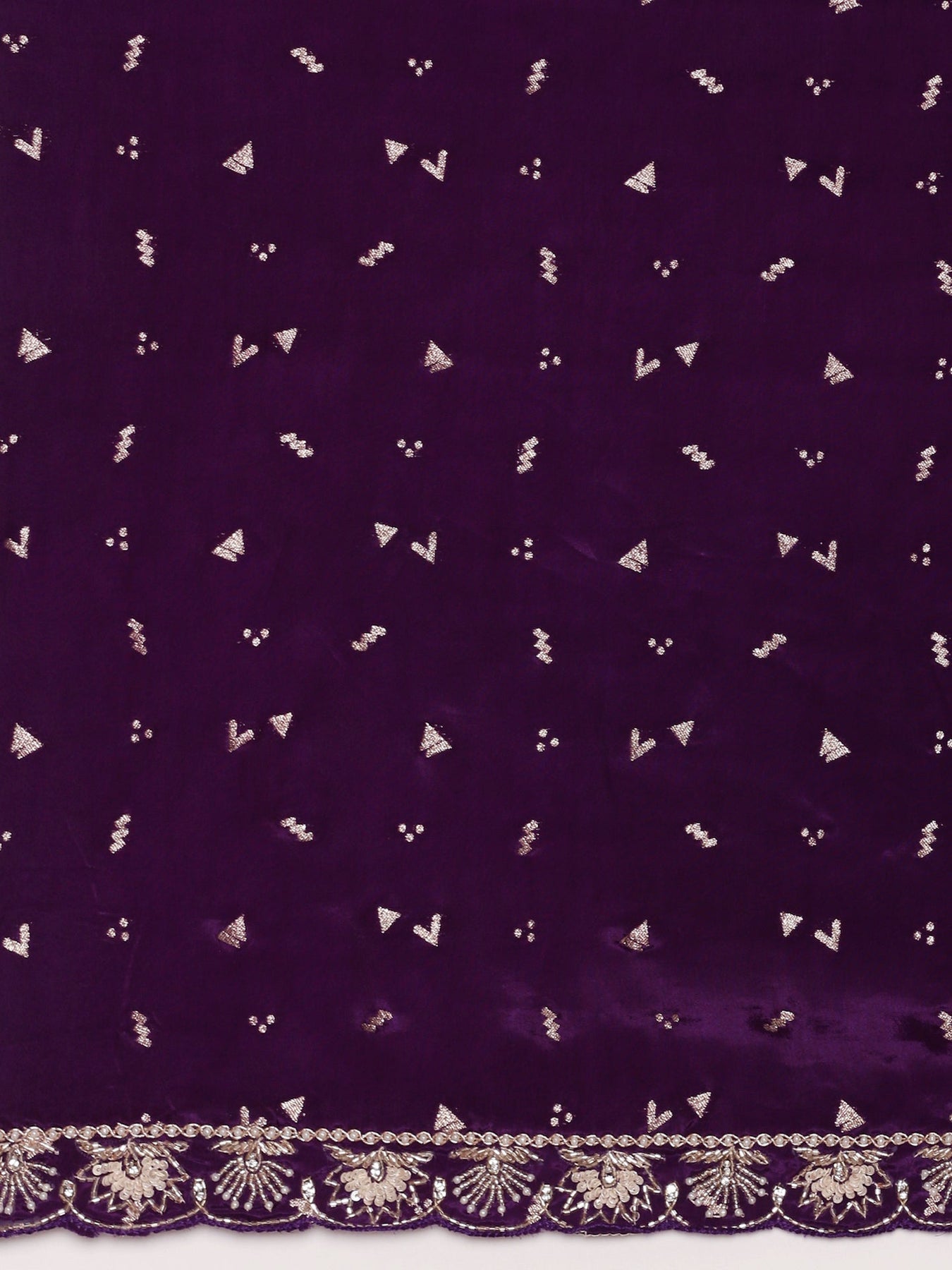 Experience timeless elegance with this Purple Crepe Saree, adorned with delicate stone work that adds a subtle sparkle to your ensemble. Crafted from soft, flowing crepe fabric, it drapes gracefully for a flattering silhouette. The ready-made blouse complements the saree perfectly, offering both convenience and style. Ideal for formal occasions, this saree combines comfort with refined craftsmanship to enhance your sophisticated look.