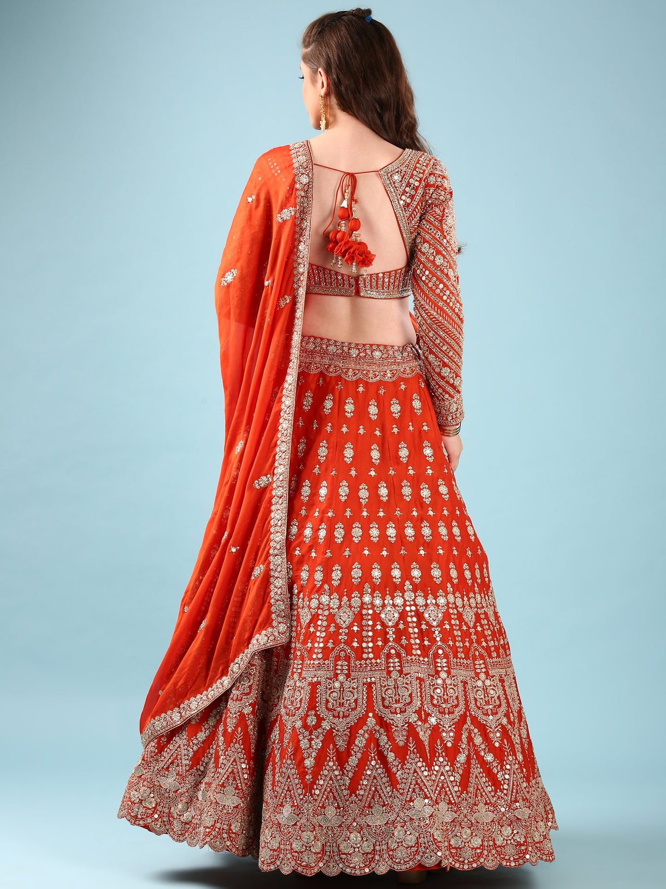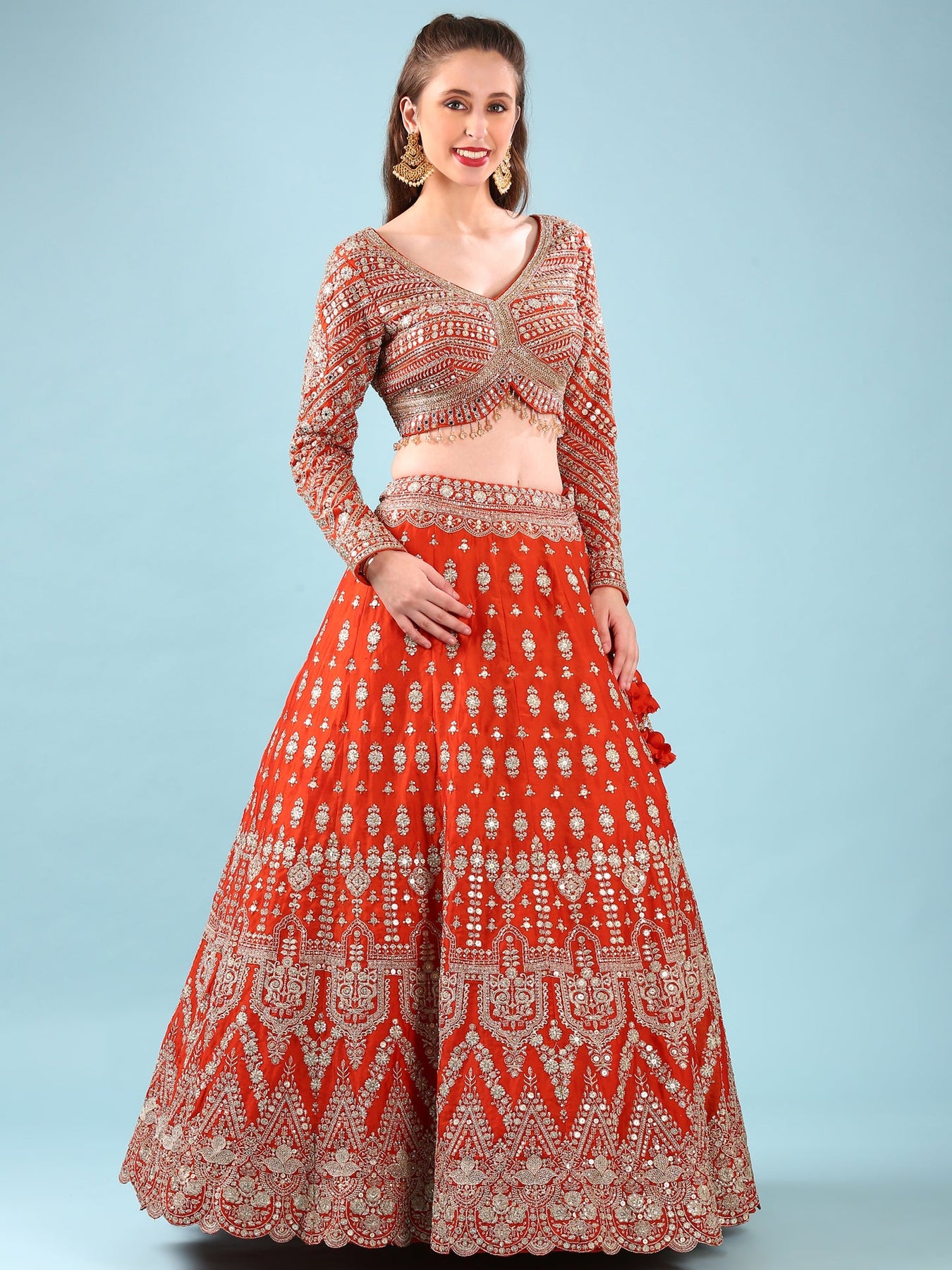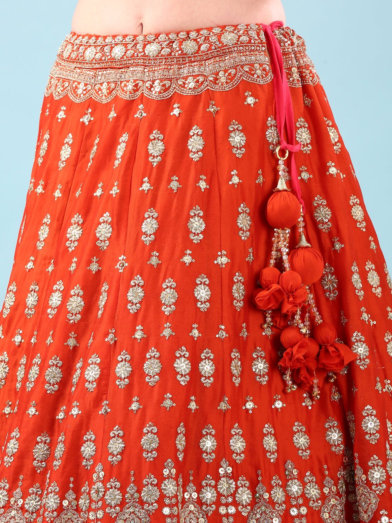 Embrace timeless elegance with this stunning Rust Georgette Hand Embroidery Ghagra Set. Crafted from luxurious georgette fabric, this traditional ensemble features intricate hand embroidery that showcases artisanal craftsmanship. The rich rust hue complements all skin tones beautifully, making it perfect for weddings, festivals, and special celebrations.
