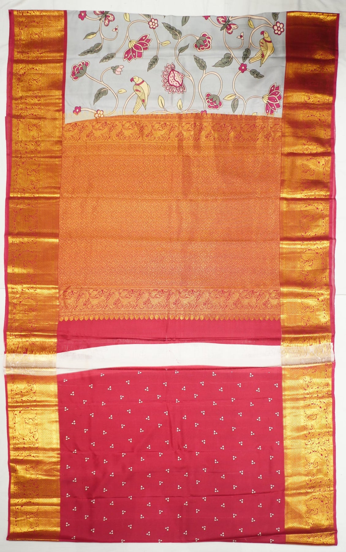 Grey Kanchi Handloom Saree With Kalamkari Design