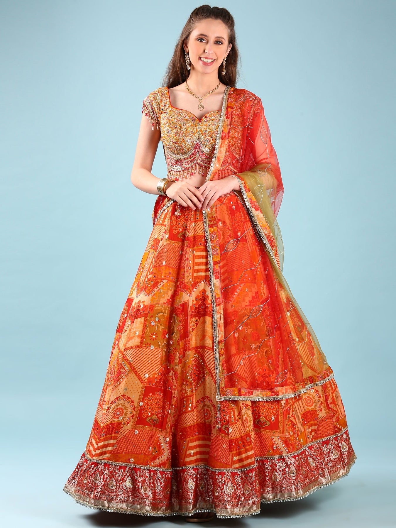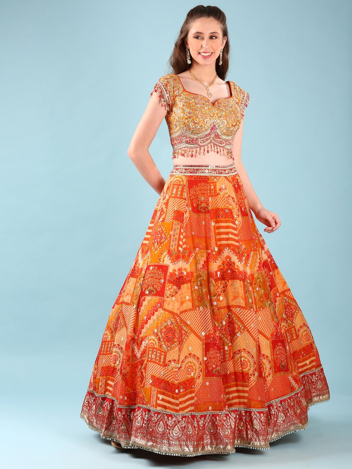 Embrace timeless elegance with this stunning Rust Chinnon Hand Embroidery Ghagra Set. Crafted from premium chinnon fabric, this traditional ensemble features intricate hand embroidery that showcases authentic artisanal craftsmanship. The rich rust hue complements all skin tones beautifully, making it perfect for weddings, festivals, and special celebrations. The flowing ghagra silhouette offers comfort and grace, while the detailed embroidery work adds a touch of sophistication.