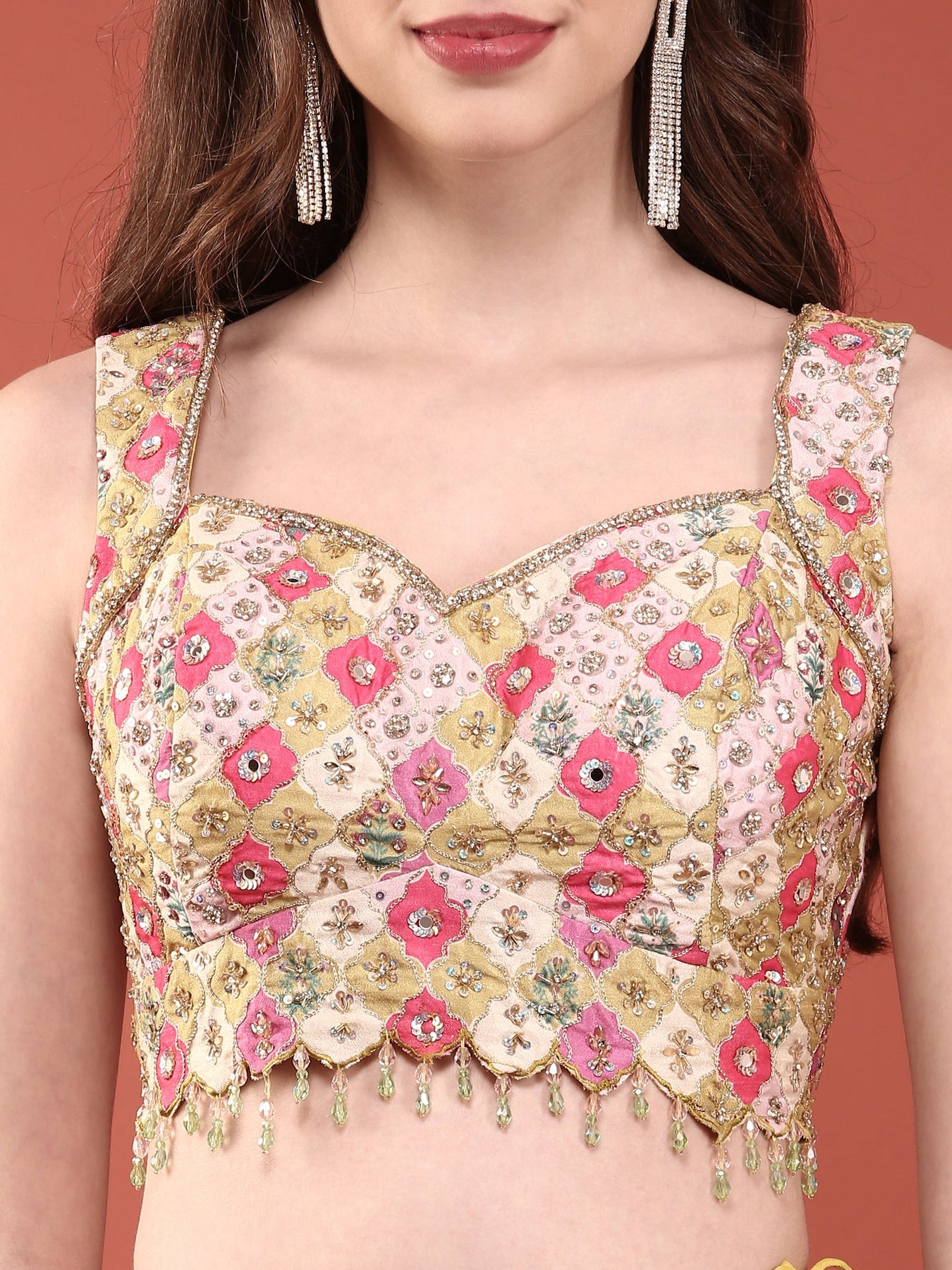 Elevate your festive wardrobe with this stunning Variyali Green Organza Ghagra Set, a masterpiece of traditional craftsmanship. Crafted from luxurious organza fabric, this ensemble features intricate beadwork and sequin embellishments that catch light beautifully, creating an enchanting shimmer. The rich green hue exudes elegance and sophistication, making it ideal for weddings, celebrations, and special occasions. The expertly designed ghagra silhouette flatters all body types while the detailed embroidery showcases authentic artisanal techniques. Perfect for those who appreciate quality ethnic wear that seamlessly blends heritage with contemporary style.