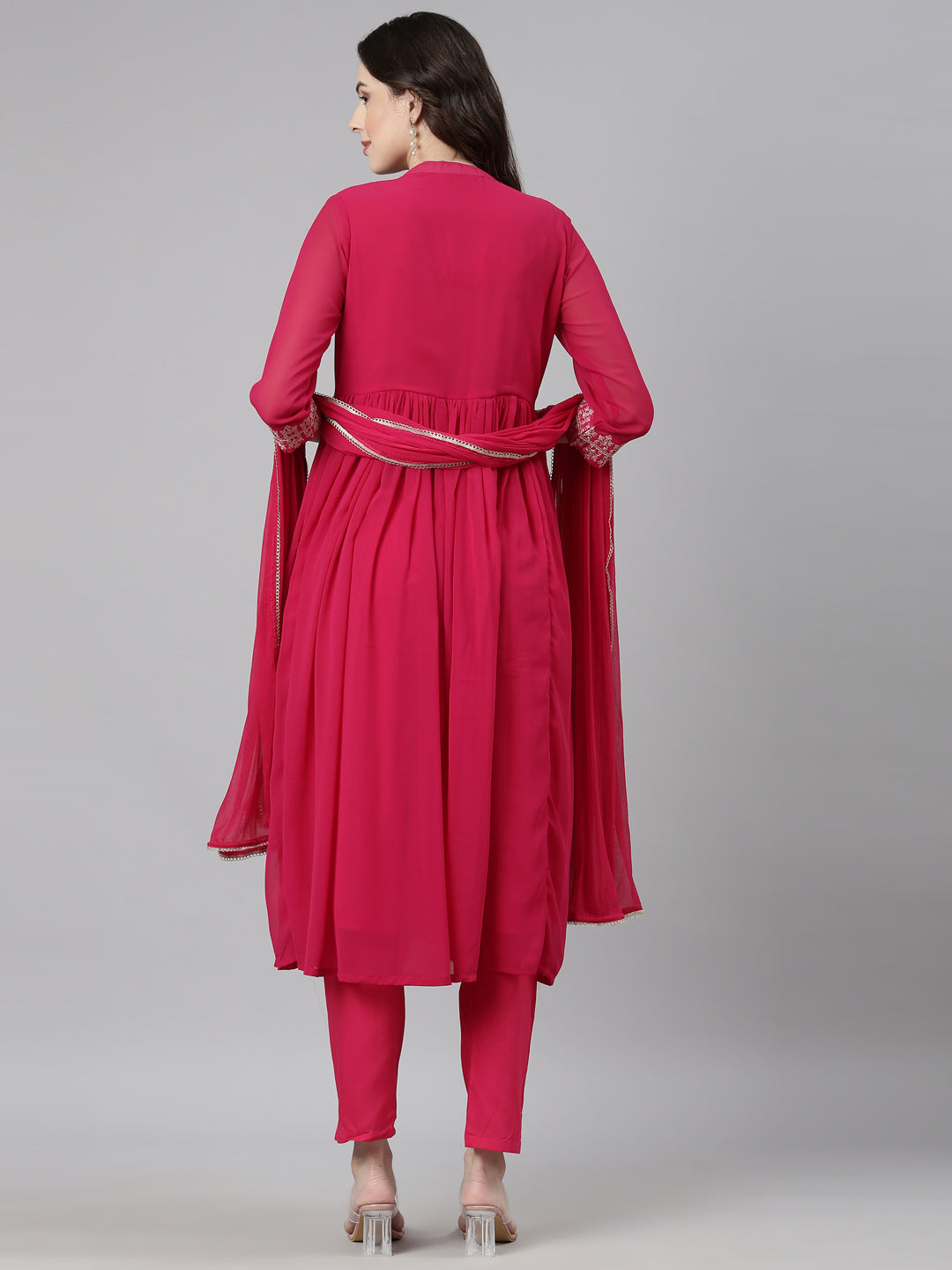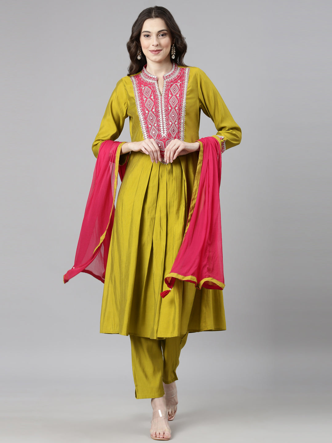 Neeru’s Anarkali Collection features designer Anarkali suits, floor-length Anarkalis, and party wear Anarkalis crafted in luxurious fabrics with intricate embroidery. Perfect for weddings, festive occasions, and celebrations, these traditional Indian outfits blend royal heritage with modern style, making every woman feel effortlessly graceful.