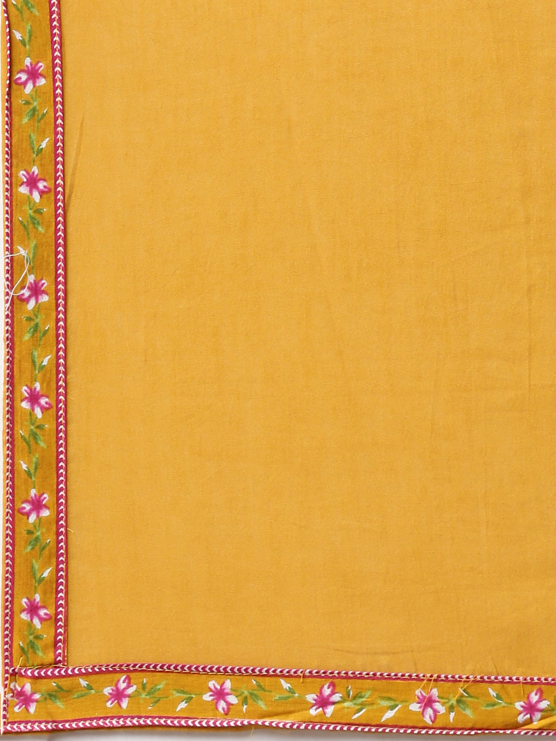 Neerus Mustard Printed Anarkali Kurta and Trousers With Dupatta