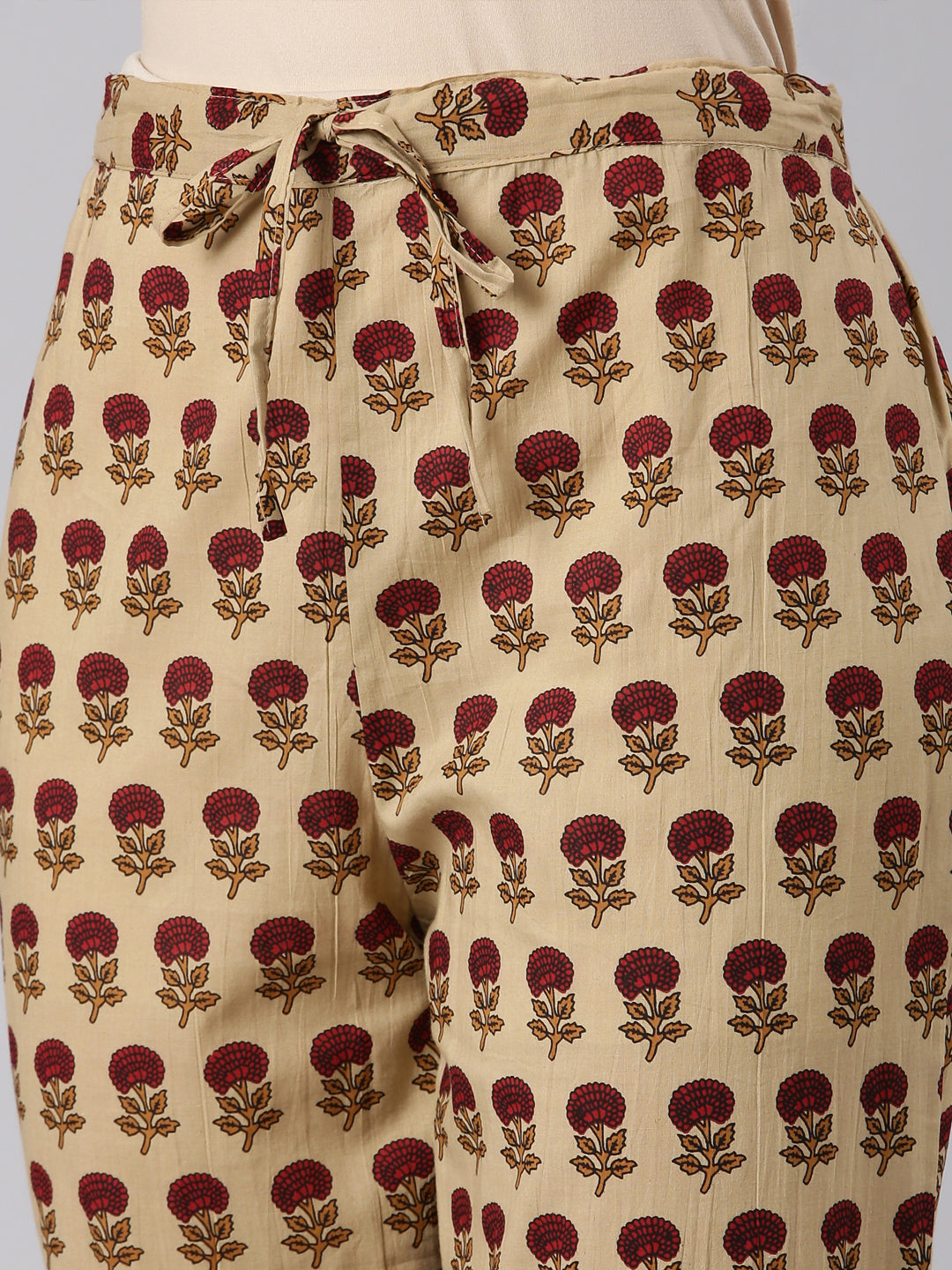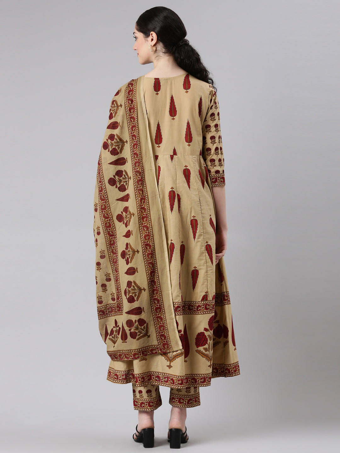 Neerus Women Beige Anarkali Kurta and Trousers With Dupatta
