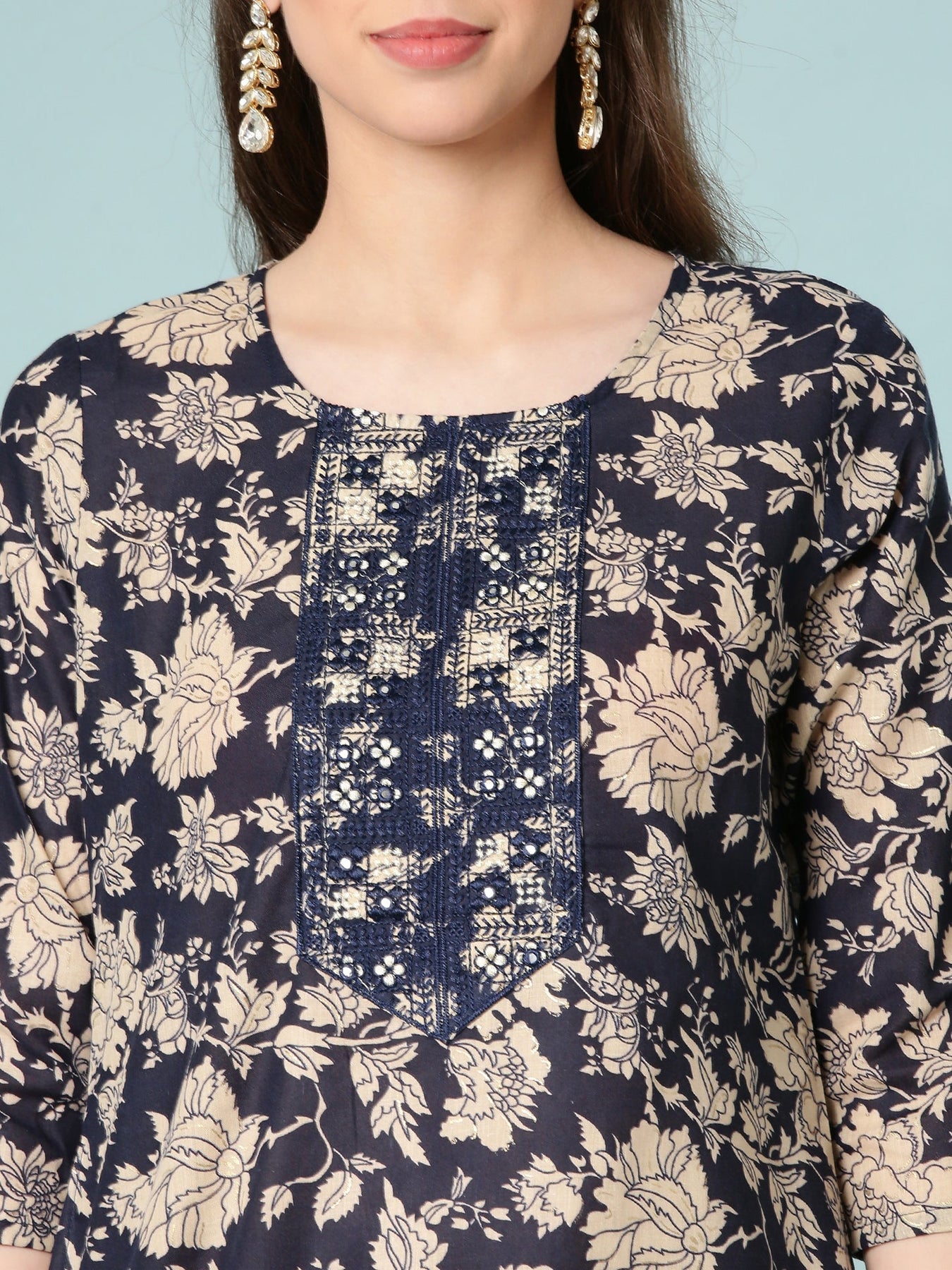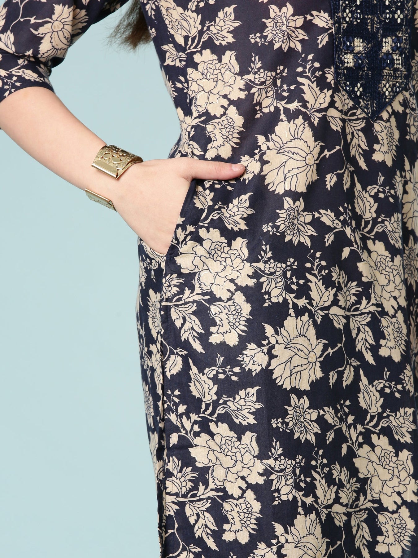 Embrace timeless elegance with this stunning three-piece ensemble in luxurious modal silk. The rich indigo blue base showcases an intricate floral digital print that brings sophistication to your wardrobe. Modal silk's breathable, soft texture ensures comfort throughout the day while maintaining a graceful drape. Perfect for celebrations, gatherings, or elevating your everyday style, this versatile set combines traditional aesthetics with contemporary design. The coordinated pieces work beautifully together or separately, giving you endless styling possibilities. Discover the perfect balance of comfort and refined beauty.