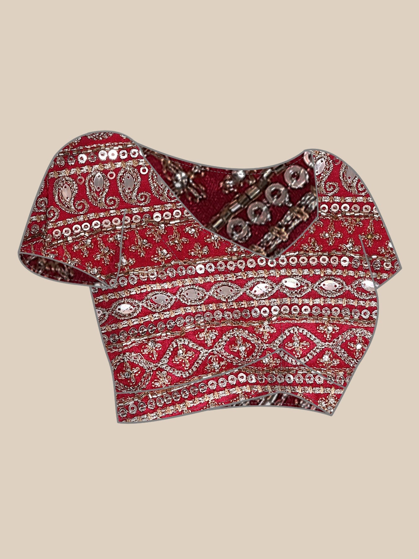 The saree is accompanied by a stylish, ready-made blouse designed to complete your look.