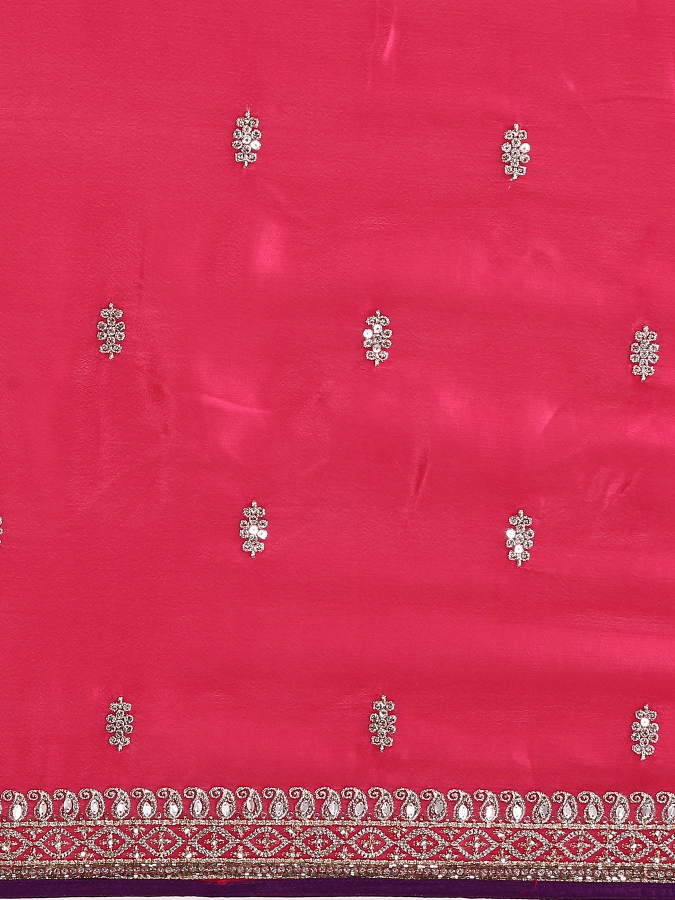 Elevate your ethnic wardrobe with this stunning purple crepe saree, adorned with intricate zari embroidery that catches light beautifully. The luxurious crepe fabric drapes elegantly, offering comfort for all-day wear while maintaining its sophisticated silhouette. Paired with a readymade blouse, this saree is perfect for weddings, festivals, and special occasions. The rich purple hue complements various skin tones, making it a versatile choice for your collection. Experience the perfect blend of traditional craftsmanship and modern convenience with this complete saree ensemble.