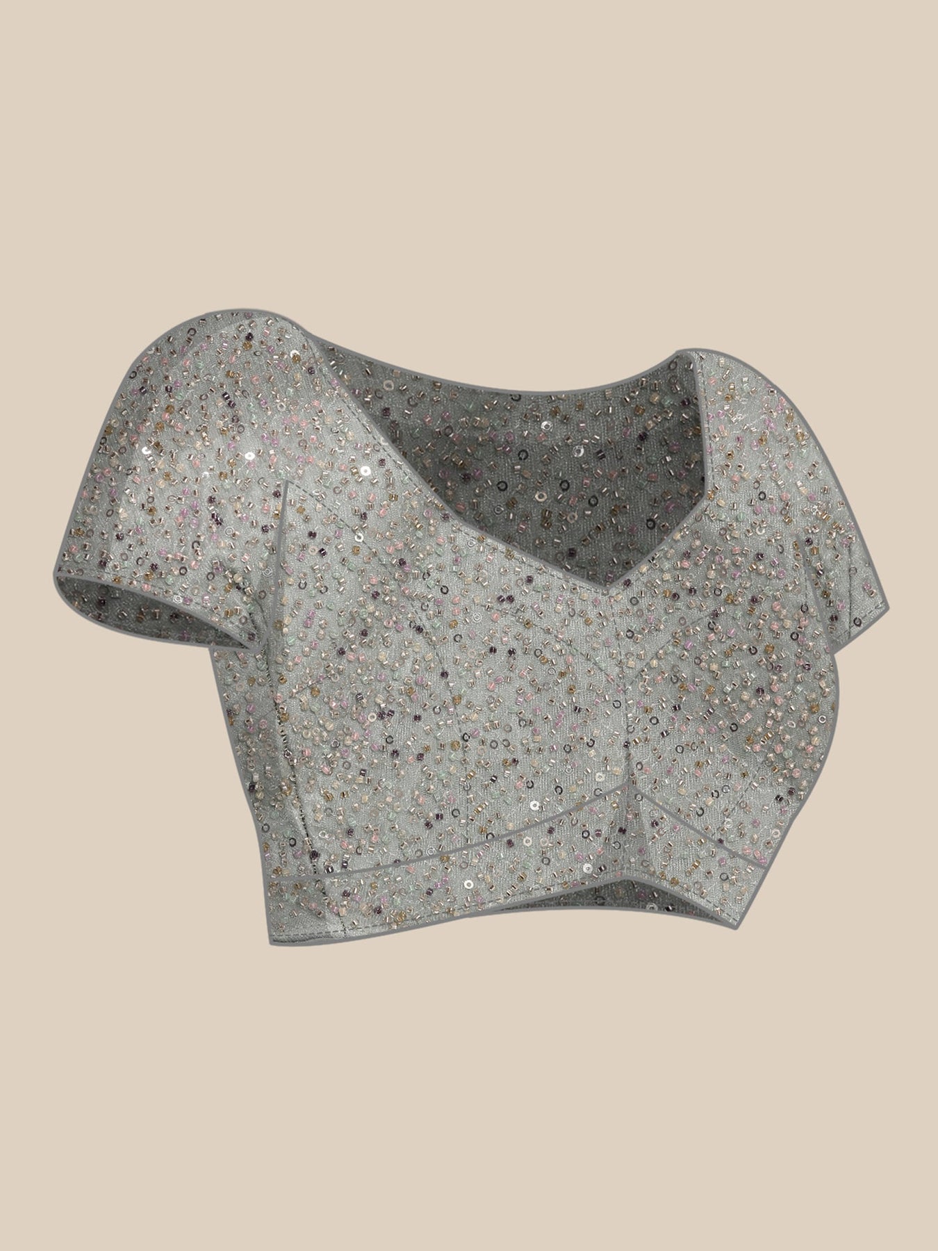 The saree is accompanied by a stylish, ready-made blouse designed to complete your look.