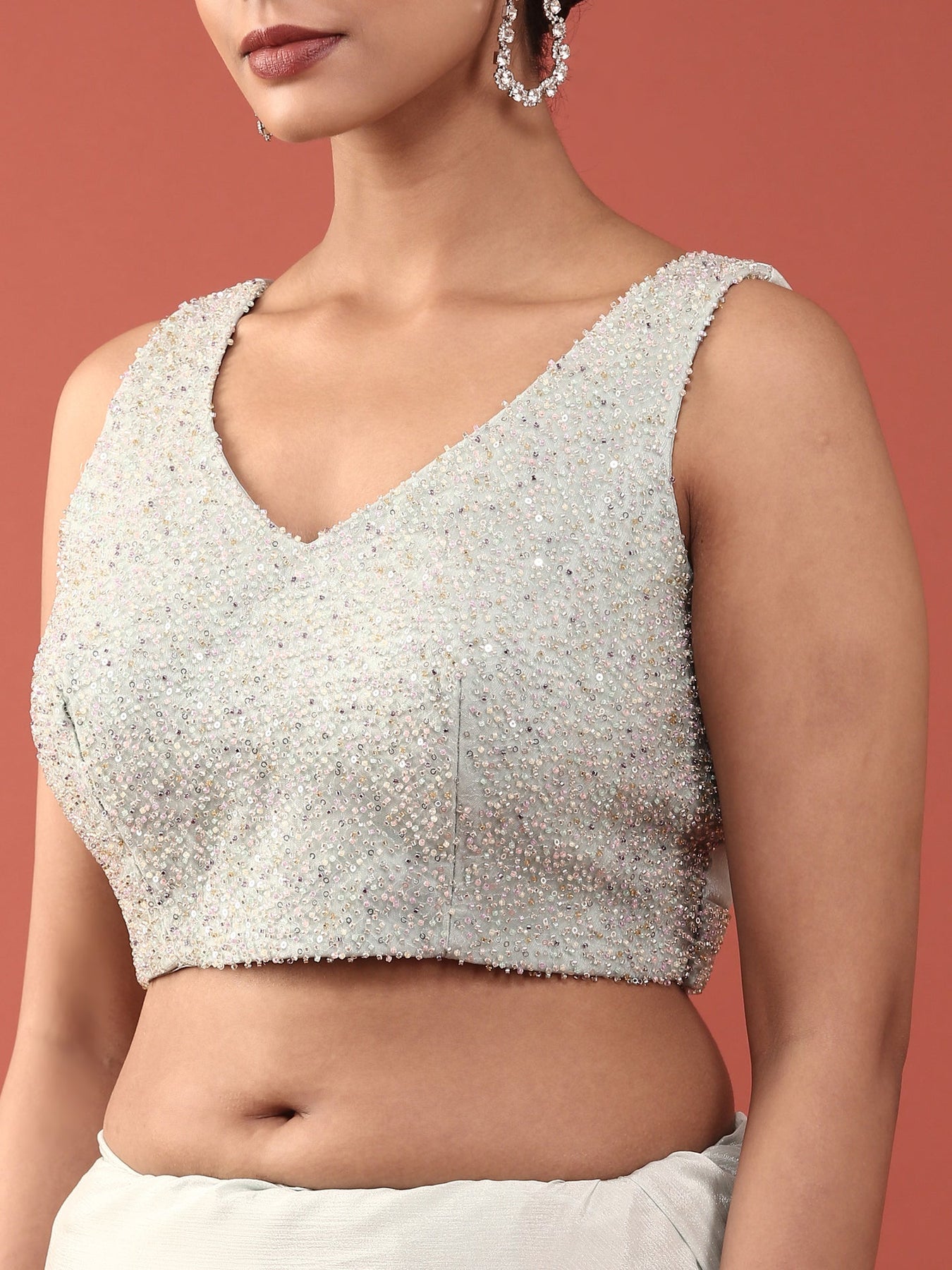 Embrace timeless elegance with this stunning sea blue crepe saree, adorned with intricate stone and thread embroidery that catches light beautifully. The luxurious crepe fabric drapes gracefully, offering comfort for all-day wear while maintaining its sophisticated silhouette. Paired with a readymade blouse, this saree is perfect for weddings, festivals, and special occasions. The detailed embroidery work showcases traditional craftsmanship, making it a versatile addition to your ethnic wardrobe. Effortlessly transition from celebrations to formal events with this exquisite piece that combines classic charm with contemporary appeal.