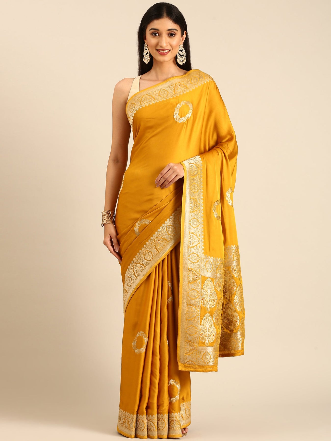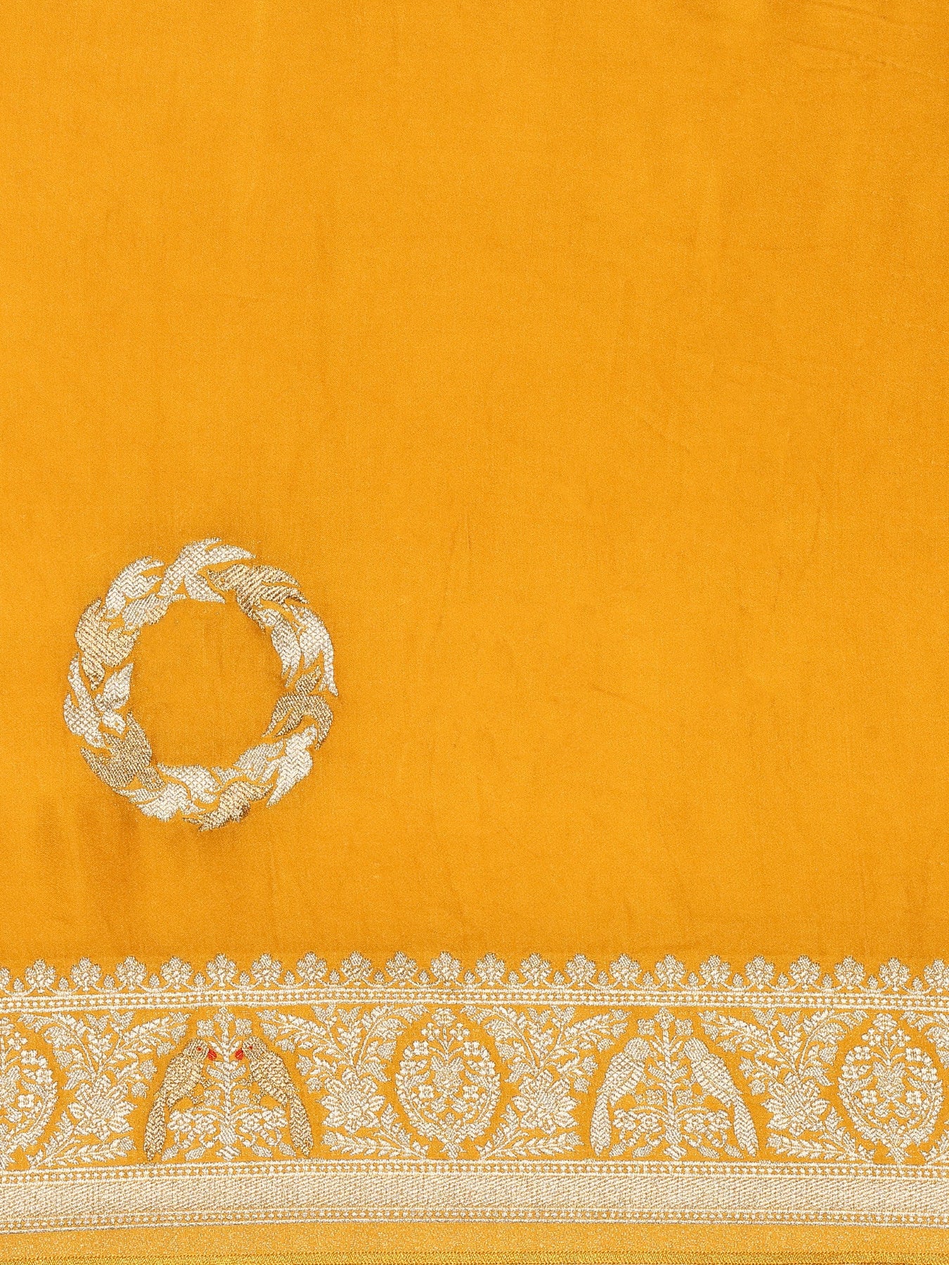 Yellow Banaras Silk Saree With Rich Zari Motifs And Border