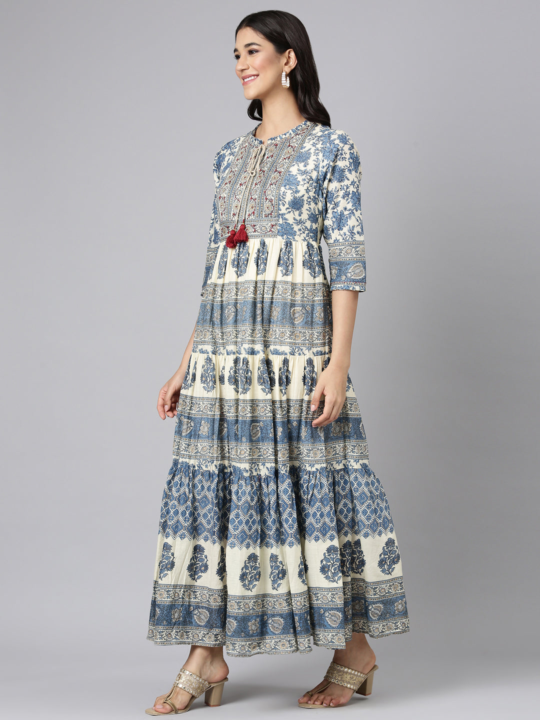 Neerus Blue Casual Tribal Maxi Dresses showcase a harmonious blend of traditional tribal artistry and modern casual wear. Designed with breathable fabric and a relaxed maxi silhouette, these dresses ensure all-day comfort and effortless style.