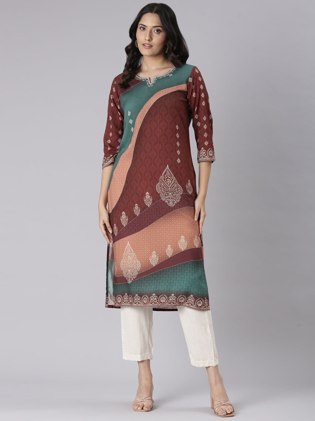 Elevate your everyday wardrobe with the Neerus Brown Casual Paisley Straight Kurta. Featuring a timeless paisley pattern on a rich brown fabric, this kurta blends classic style with contemporary ease. Its straight cut offers a flattering silhouette, making it perfect for casual outings and refined gatherings alike.
