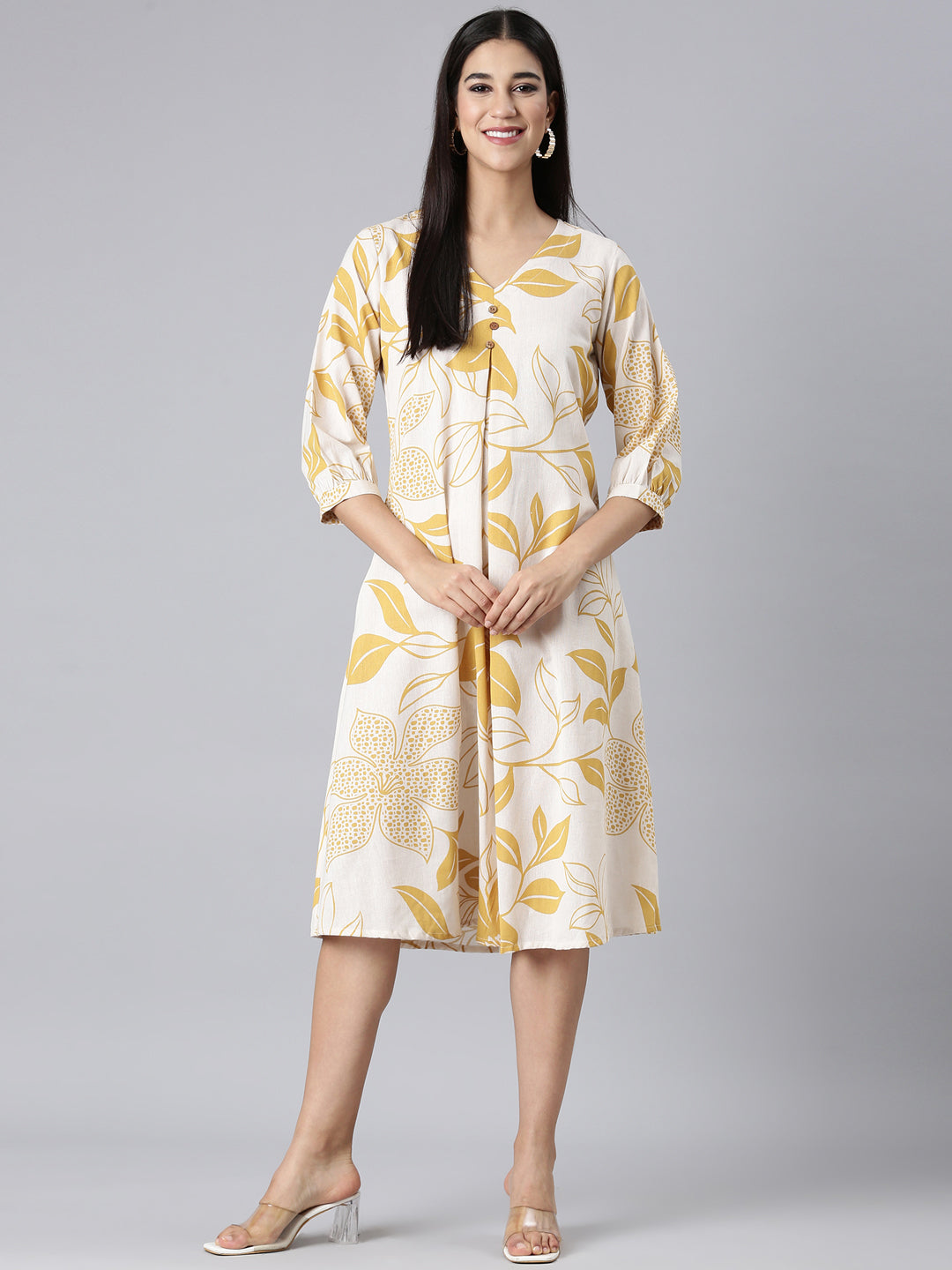 Neerus Mustard Casual Floral A-Line Kurtas combine traditional charm with contemporary style. Crafted with a comfortable A-line silhouette, these kurtas feature a vibrant mustard base adorned with delicate floral patterns, perfect for casual wear.
