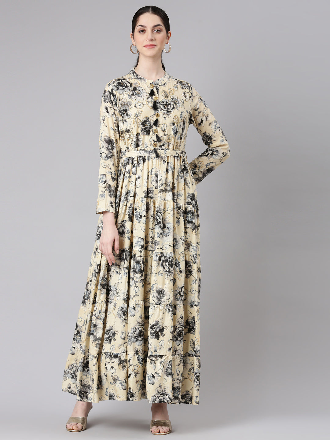 Neerus Cream Floral Printed Maxi Dresses Feel comfortable and stylish at the same time with this beautiful floral maxi dress.