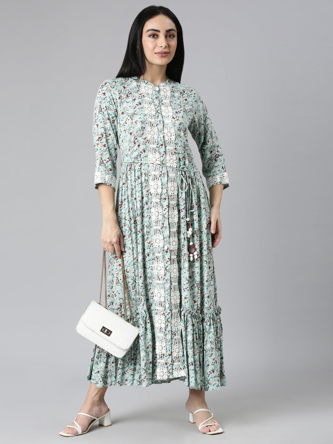 Neerus Green Flared Casual Floral Maxi Dresses It's the perfect balance of comfort and style. Feel confident and beautiful all day long!