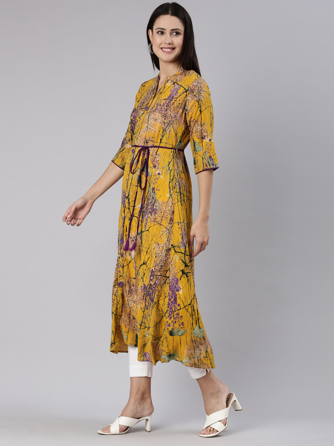 Discover Neeru's Mustard-Hued Straight Casual Tropical Dress, An Elegant Garment That Captures The Essence Of Relaxed Luxury.