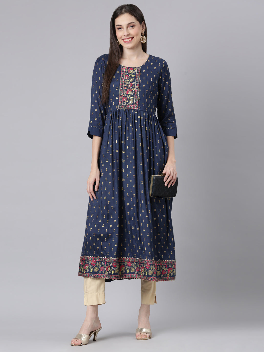 Enhance your style with Neerus Navy Blue Straight Casual Solid Dresses. The elegant design and high-quality fabric will elevate your look and provide a comfortable fit. Perfect for any casual occasion.