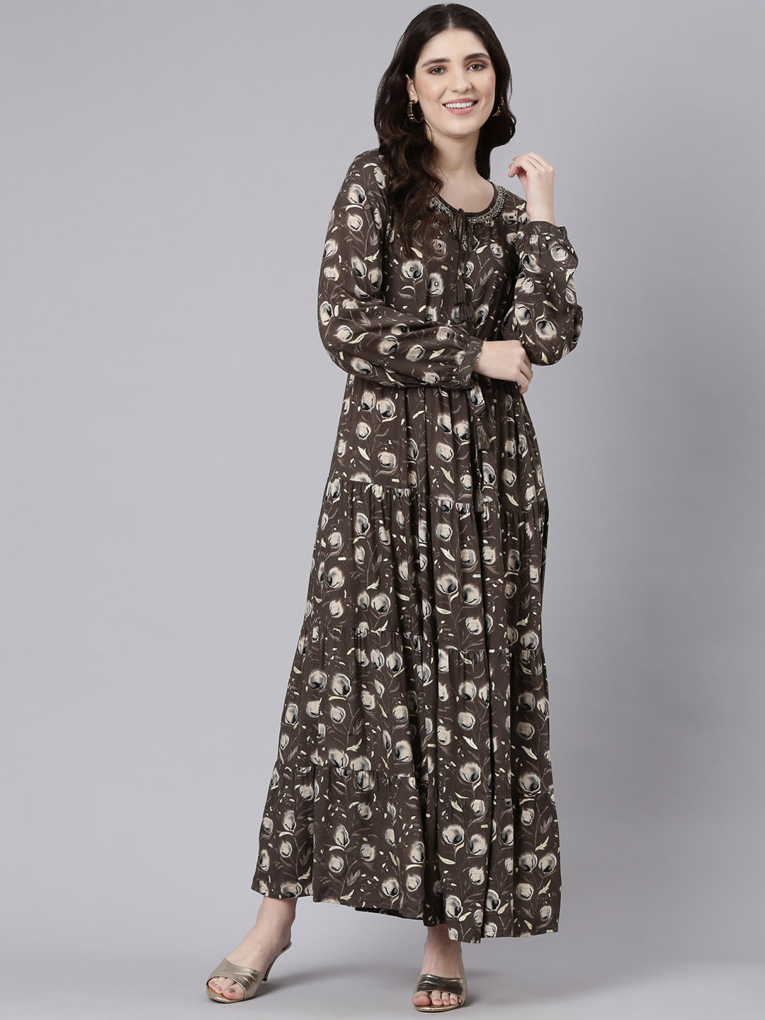 Neeru's Olive Flared Casual Printed Fit And Flare Dresses Flattering And Fashionable. This Dress Is Sure To Be A Showstopper With Its Effortlessly Chic Flared Silhouette And Playful Printed Pattern!