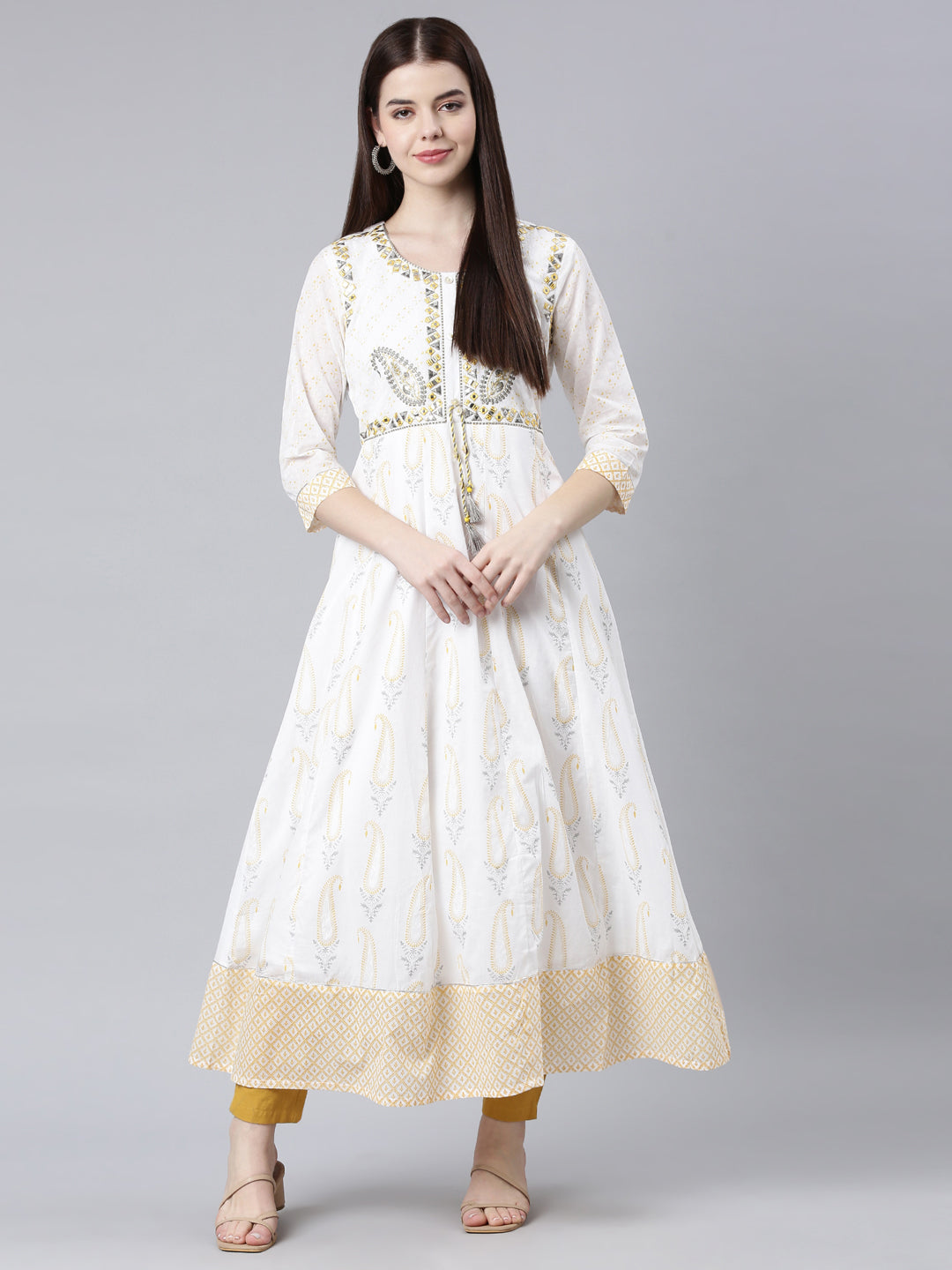 Neerus White Straight Casual Ethnic Motifs Maxi Dresses