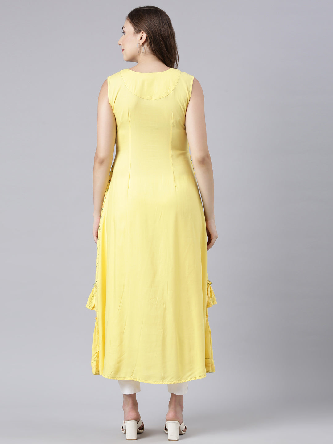Neerus Yellow Flared Casual Solid Maxi Dresses
