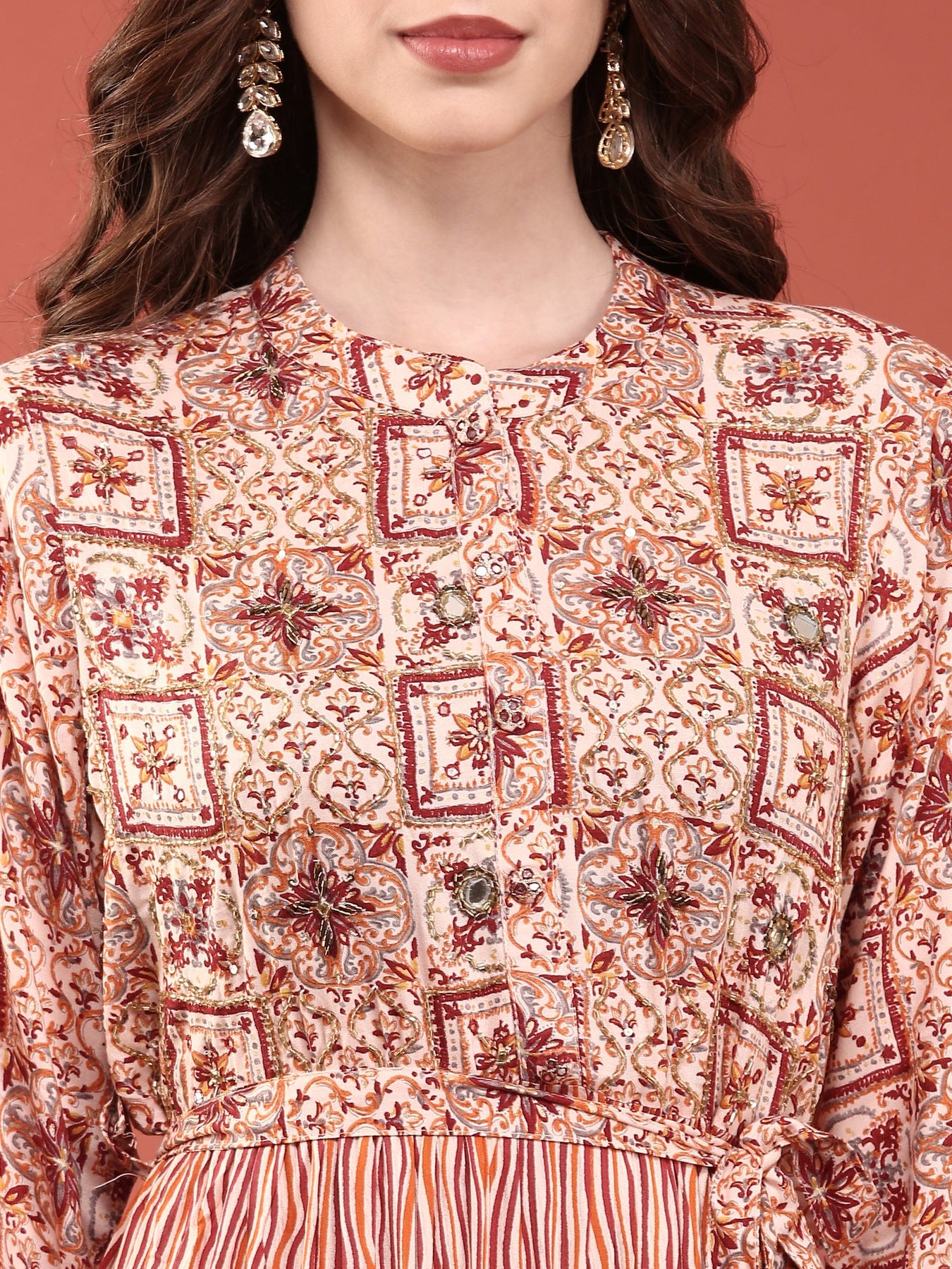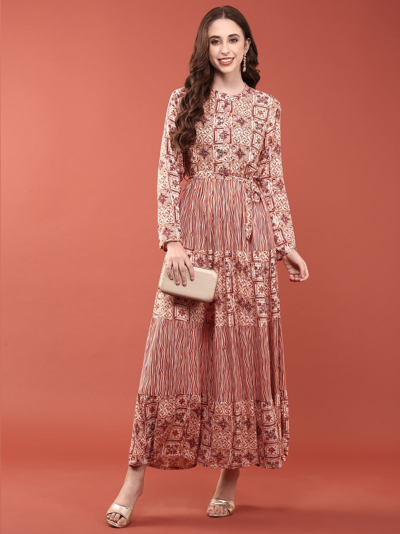 Elevate your wardrobe with this sophisticated peach rayon long dress, featuring a striking digital print design. Crafted from premium rayon fabric, this piece offers exceptional breathability and a luxurious drape that flatters every silhouette. The vibrant digital print showcases intricate detailing that sets it apart from conventional pieces, making it ideal for both casual gatherings and semi-formal occasions.
