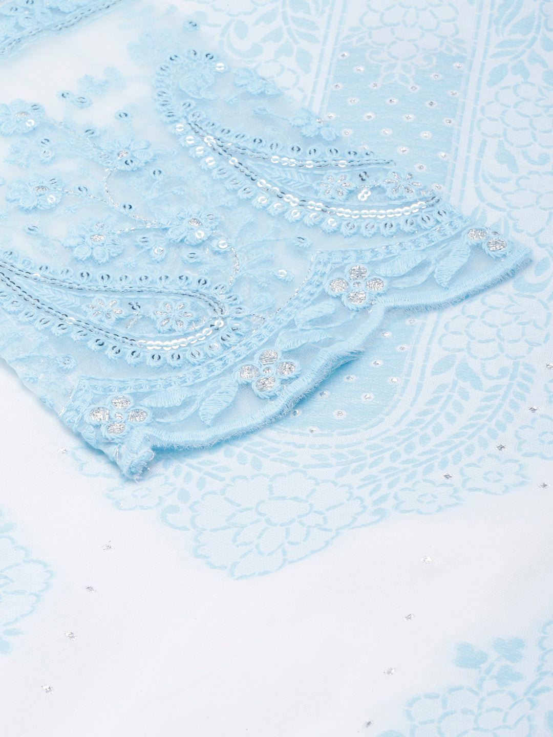 Neerus Blue Panelled Straight Embroidered Kurta and Palazzos With Dupatta