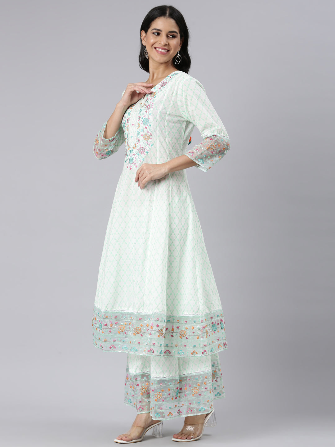 Neerus Green Panelled Curved Printed Kurta and Palazzos With Dupatta