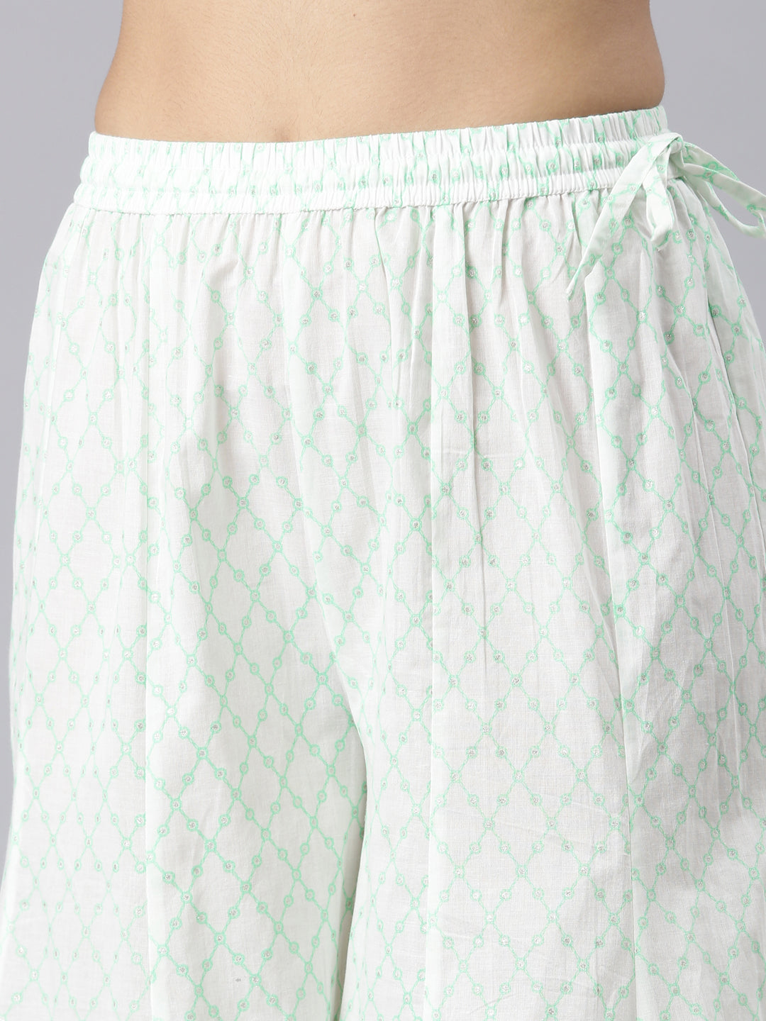 Neerus Green Panelled Curved Printed Kurta and Palazzos With Dupatta A stylish and comfortable way to add a pop of color to your wardrobe.