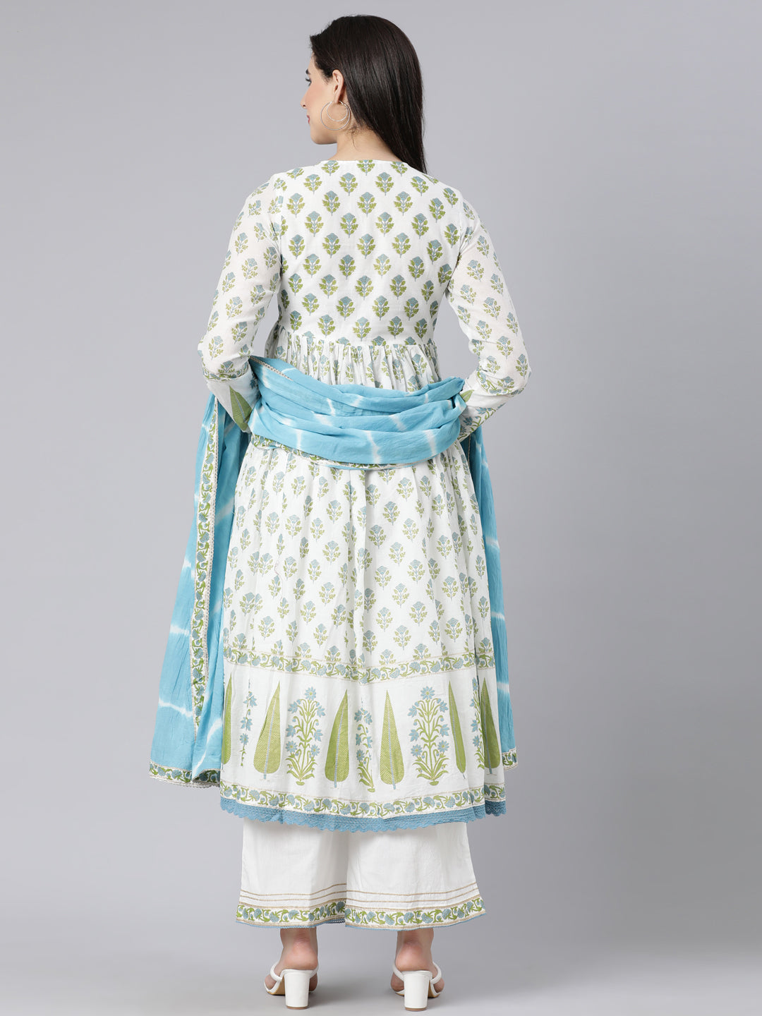 Neerus Green Panelled Printed Kurta And Palazzos With Dupatta