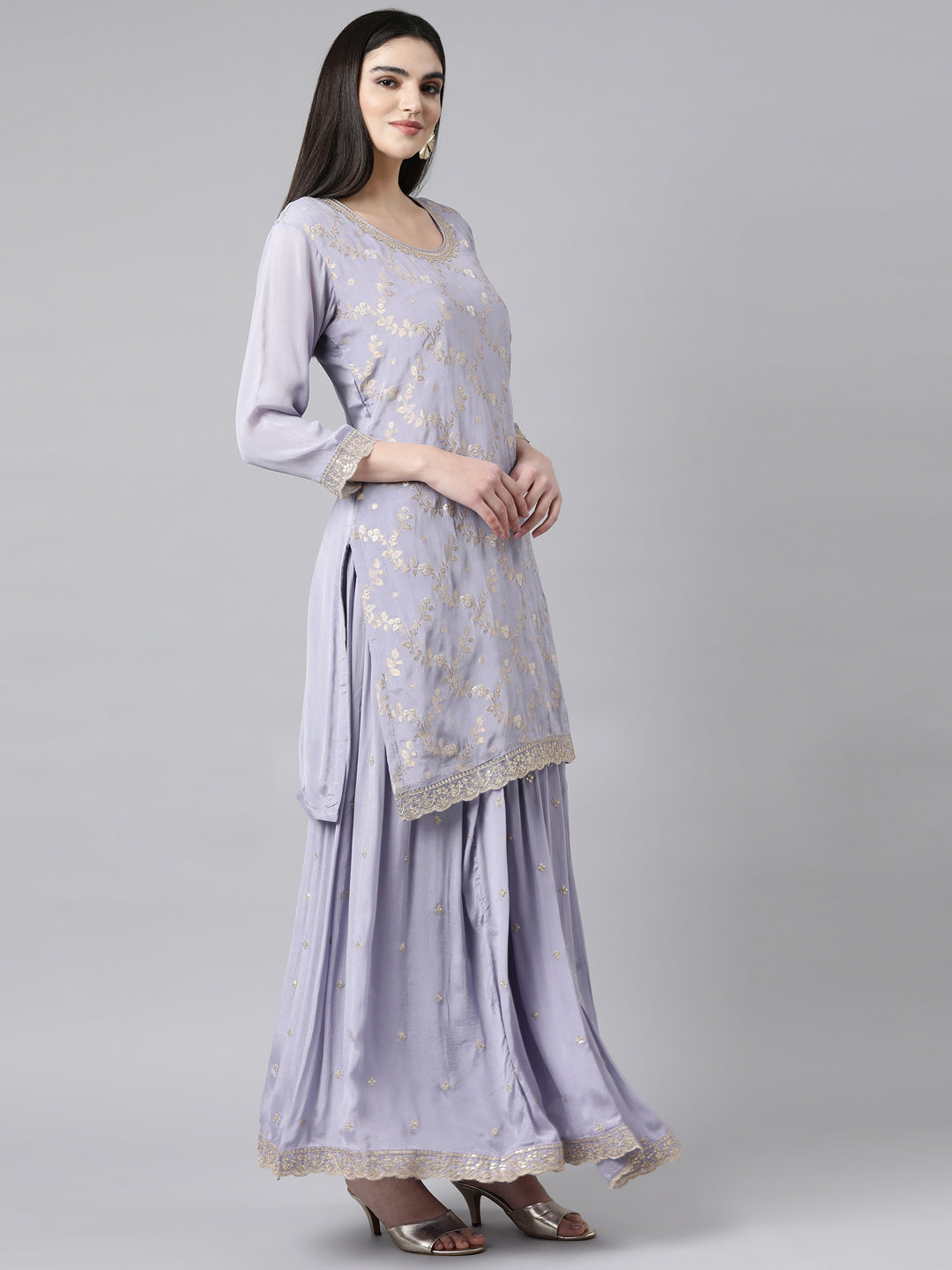 Indulge in the luxury of Neerus Lavender Kurta And Palazzos with Dupatta.