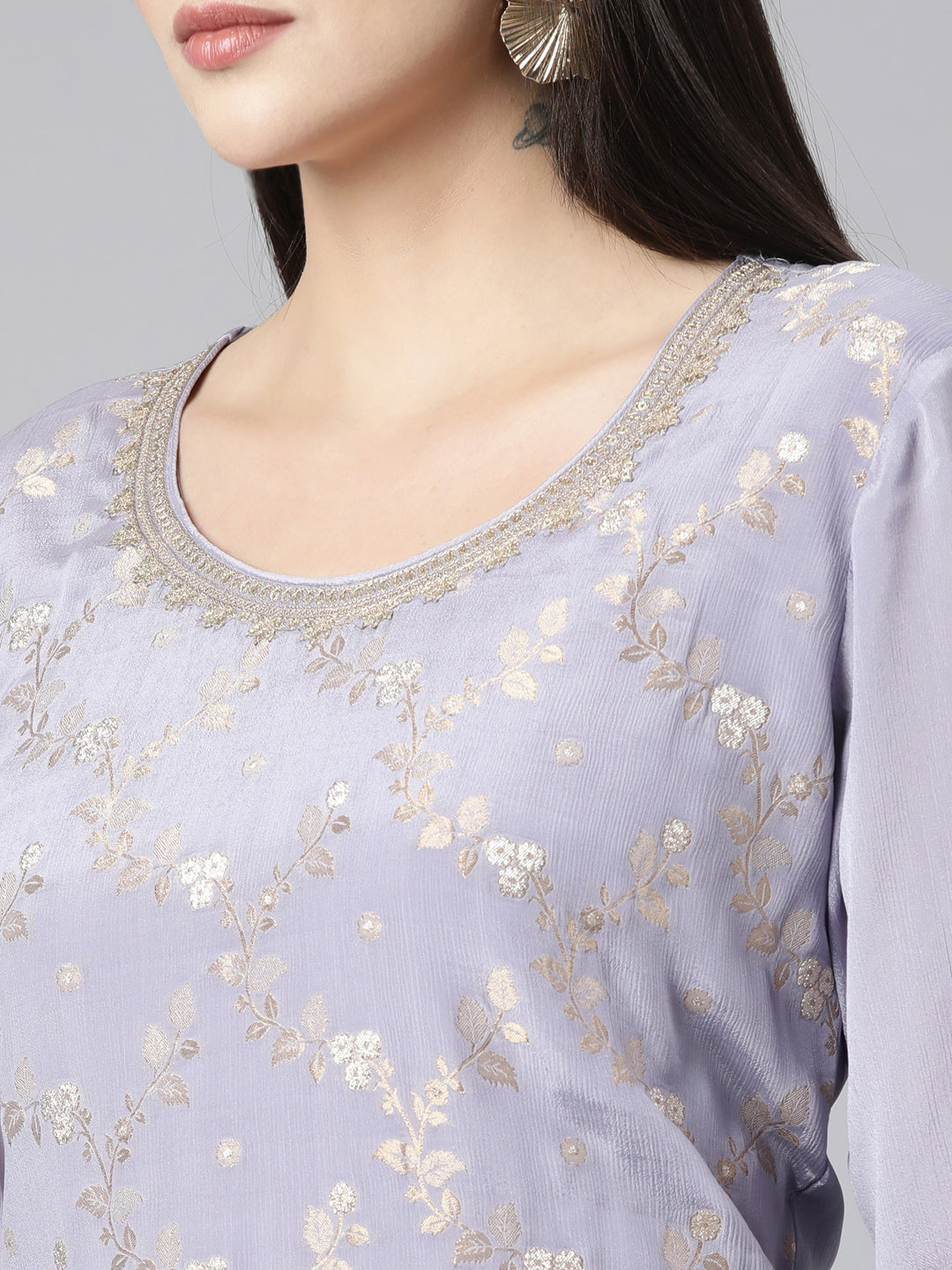 Neerus Lavender Regular Straight Floral Kurta And Palazzos With Dupatta