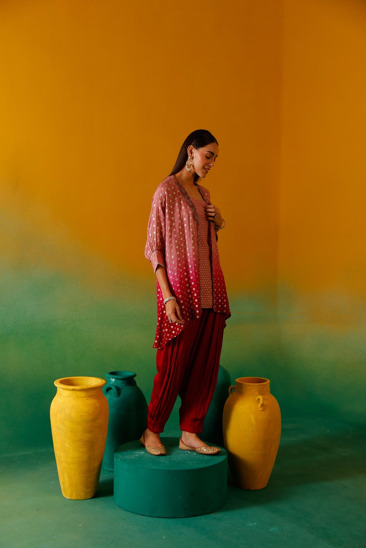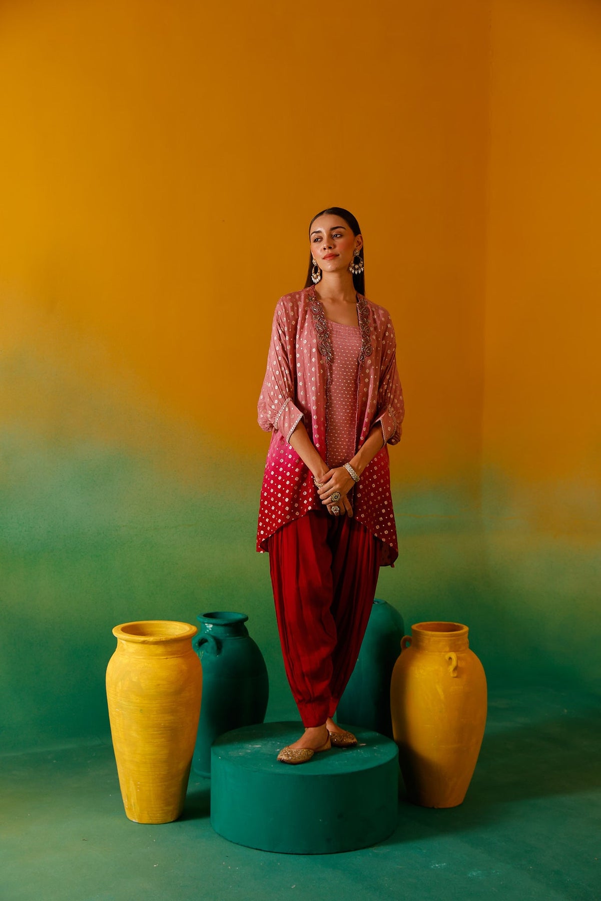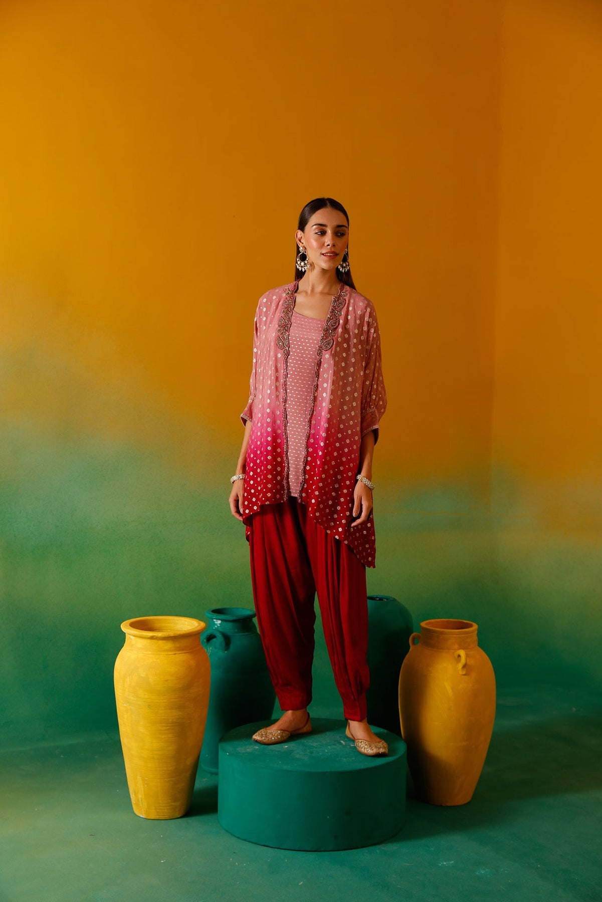 Elevate your wardrobe with this sophisticated Onion Beads and Stones Chinon Fabric Co-Ord Set. Meticulously crafted with premium chinon fabric, this ensemble features delicate onion bead embellishments and stone detailing for a luxurious finish. The lightweight, flowing material ensures comfort while maintaining an elegant silhouette, perfect for special occasions or formal gatherings.