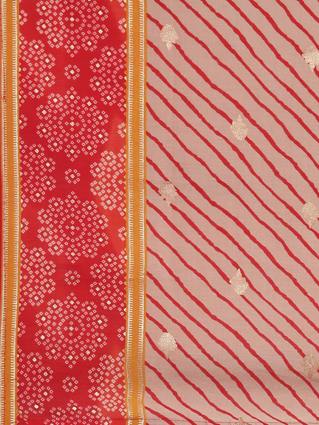 Neerus Red Casual Bandhani Straight Kurti and Palazzos With Dupatta