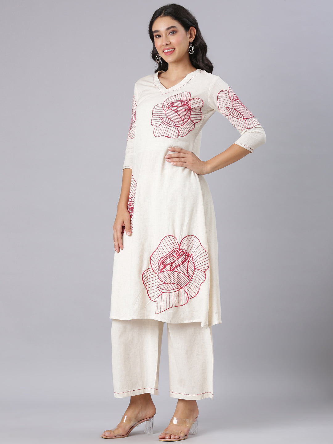Neerus Red Embroidered Straight Kurta And Palazzos