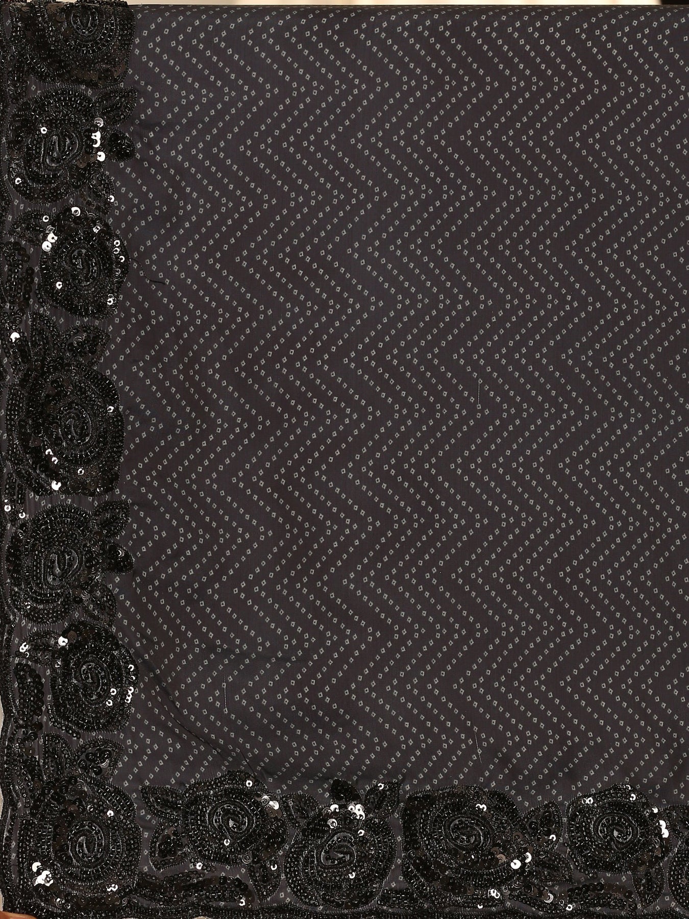 Black & white satin printed saree with hand embroidery & ready made blouse