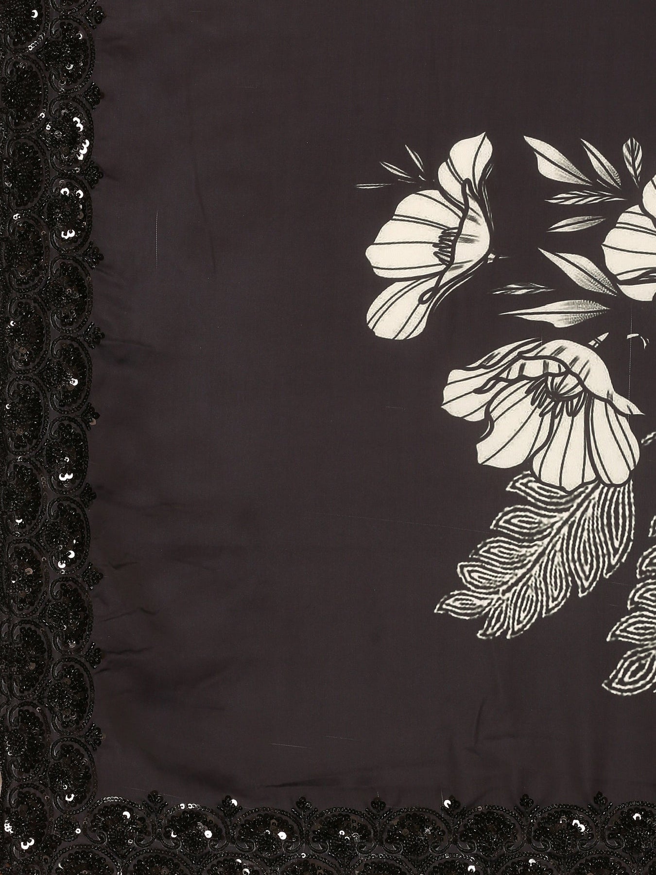 This elegant black and white satin saree features delicate hand embroidery, adding a touch of artisanal charm to its printed design. Crafted for comfort and style, it comes with a ready-made blouse, making it easy to wear for any special occasion. The smooth satin fabric offers a graceful drape that enhances your silhouette while ensuring you feel confident and poised throughout your event.