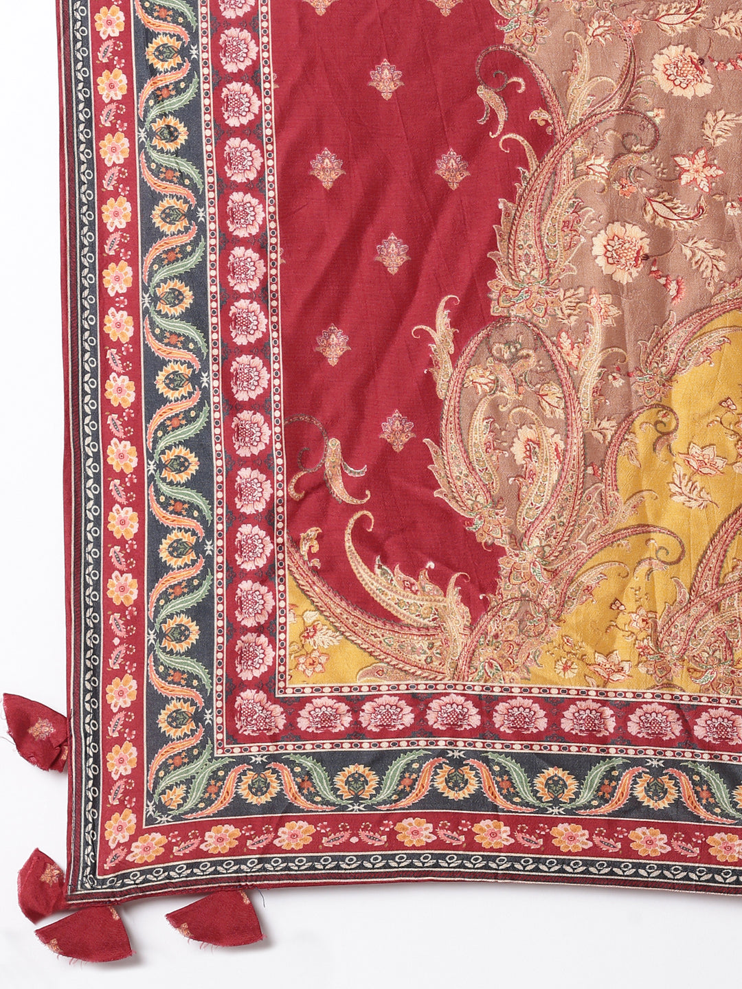 Elevate your ethnic wardrobe with this Maroon Georgette Anarkali Three Piece Set. Crafted from flowing georgette fabric, it features a gracefully flared silhouette that enhances your elegance. The rich maroon hue adds a timeless charm, perfect for festive occasions or celebrations. This set combines comfort and style, ensuring you look refined while feeling at ease throughout your day or evening.