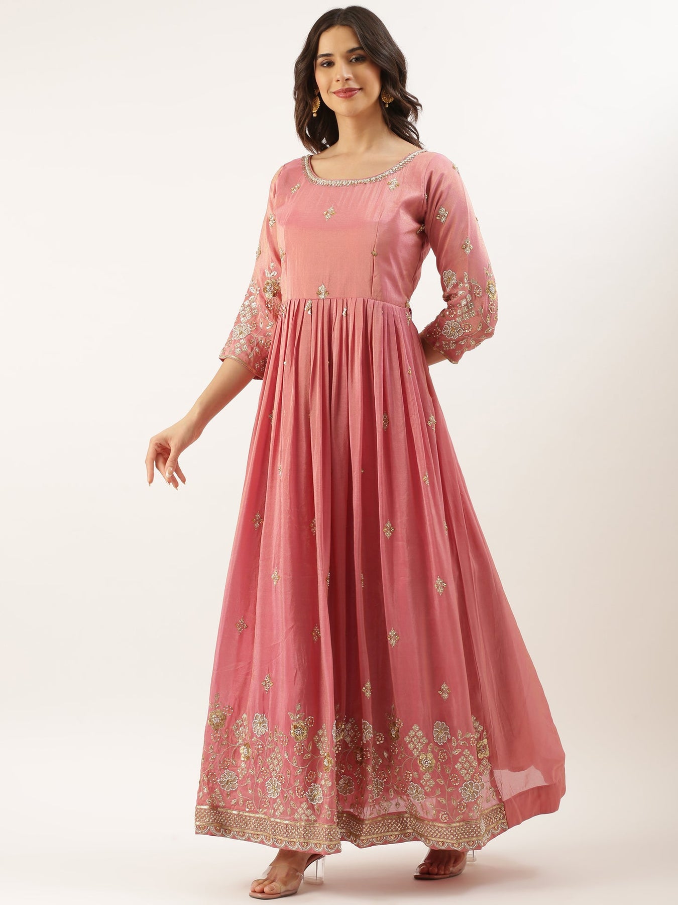 This Pink Tissue Embroidered Long Kali features delicate embroidery that enhances its elegant texture. Crafted from lightweight tissue fabric, it offers graceful movement and a refined silhouette. Perfect for sophisticated occasions, this long kali combines traditional craftsmanship with contemporary style, making it a timeless addition to your wardrobe.