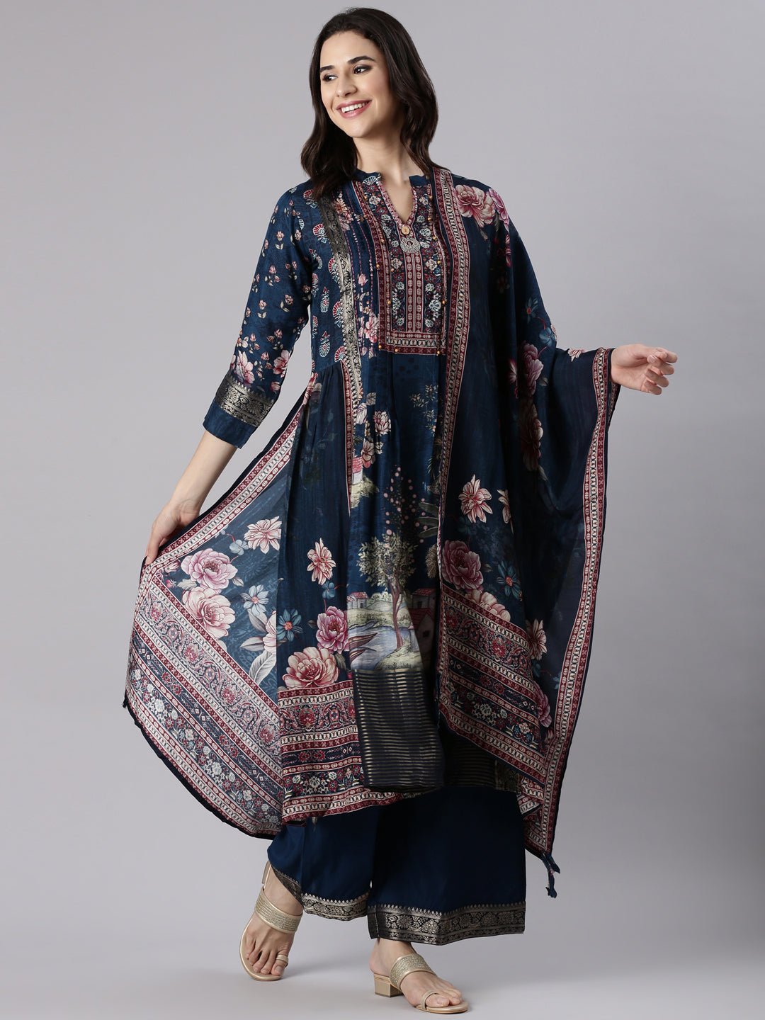 This Blue Muslin Printed Three Piece Set combines elegant comfort with timeless design. Crafted from soft muslin fabric, it offers breathable wear and a delicate texture perfect for all-day ease. The intricate blue print adds a refined touch, while the coordinated pieces ensure a polished, effortless look for any occasion.