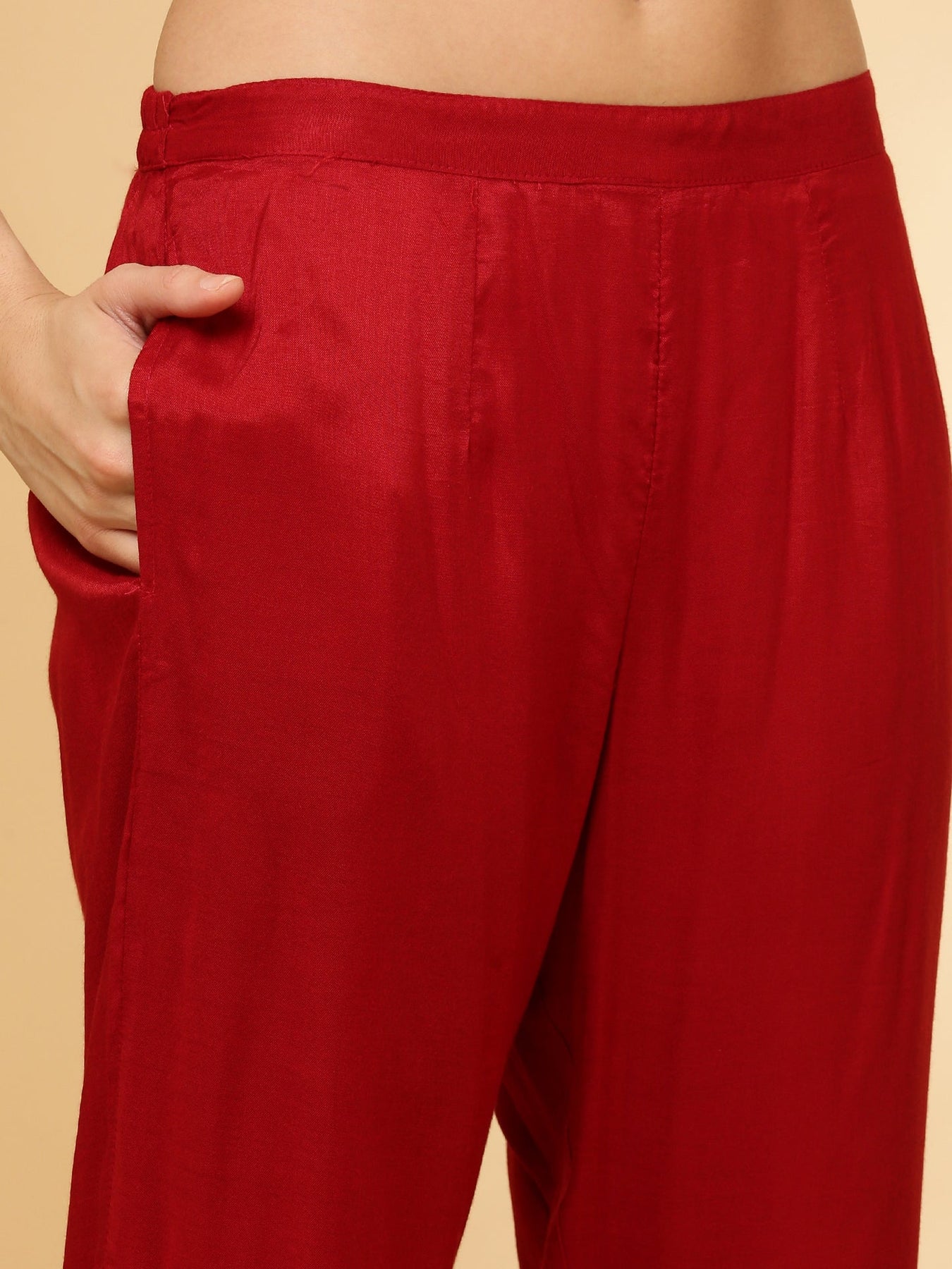 This Dark Rust Chinnon Printed Three Piece Set combines elegance and comfort in one refined ensemble. Crafted from lightweight Chinnon fabric, it features a delicate printed design that enhances its sophisticated appeal. Ideal for both casual gatherings and formal occasions, this set offers a graceful silhouette while ensuring breathability and ease of movement. Elevate your wardrobe with this timeless, versatile outfit designed to complement your polished style.