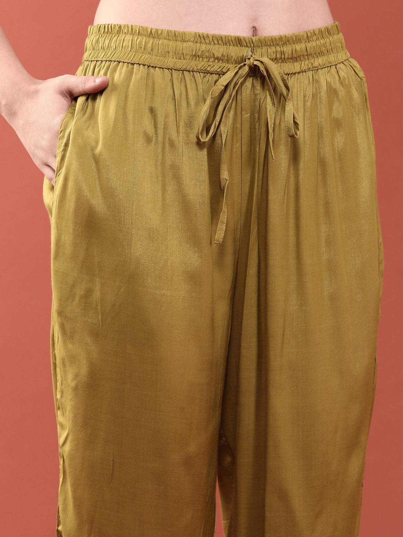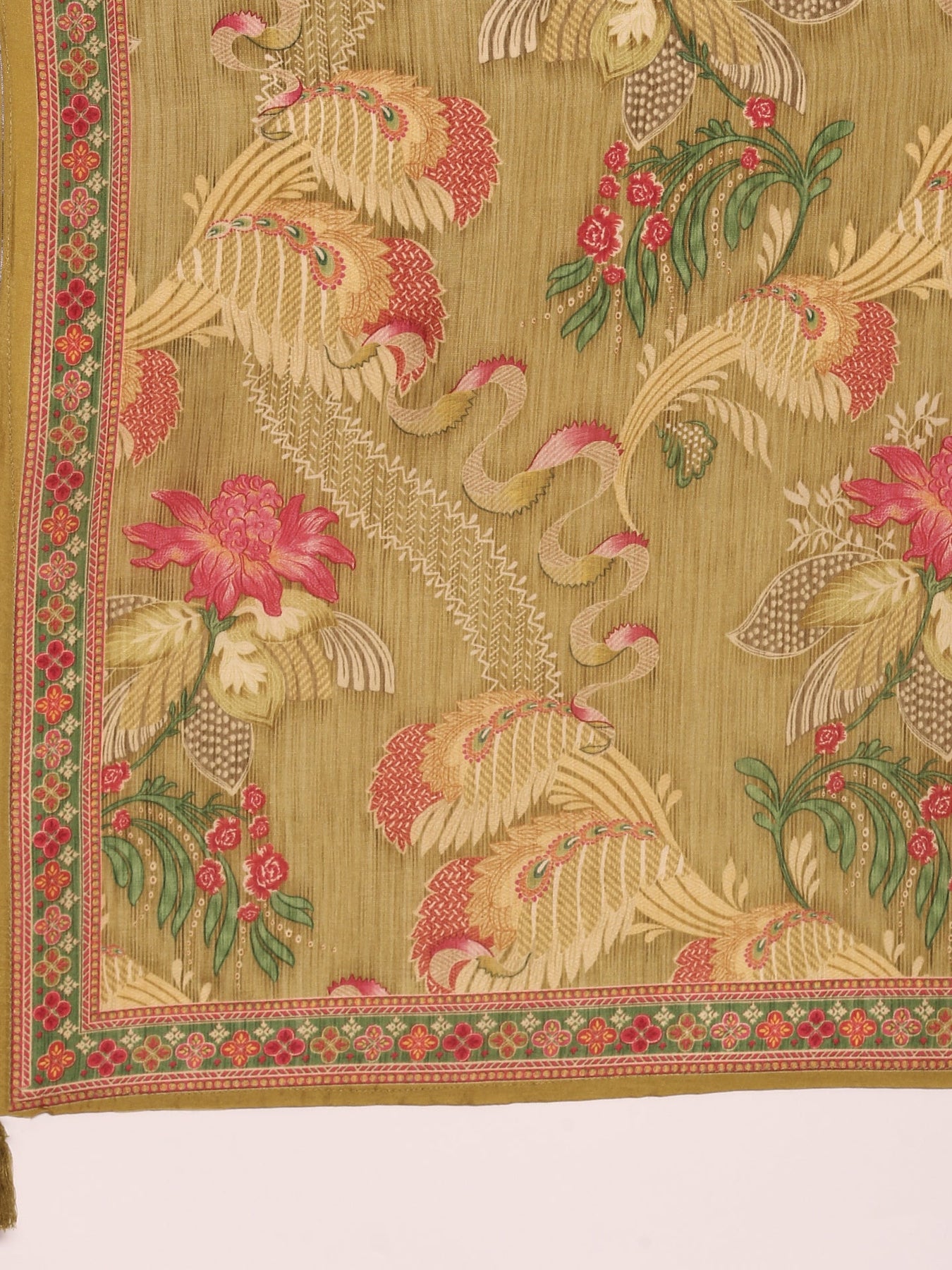 Lime Green Dola Silk Floral Digital Print Three Piece Set