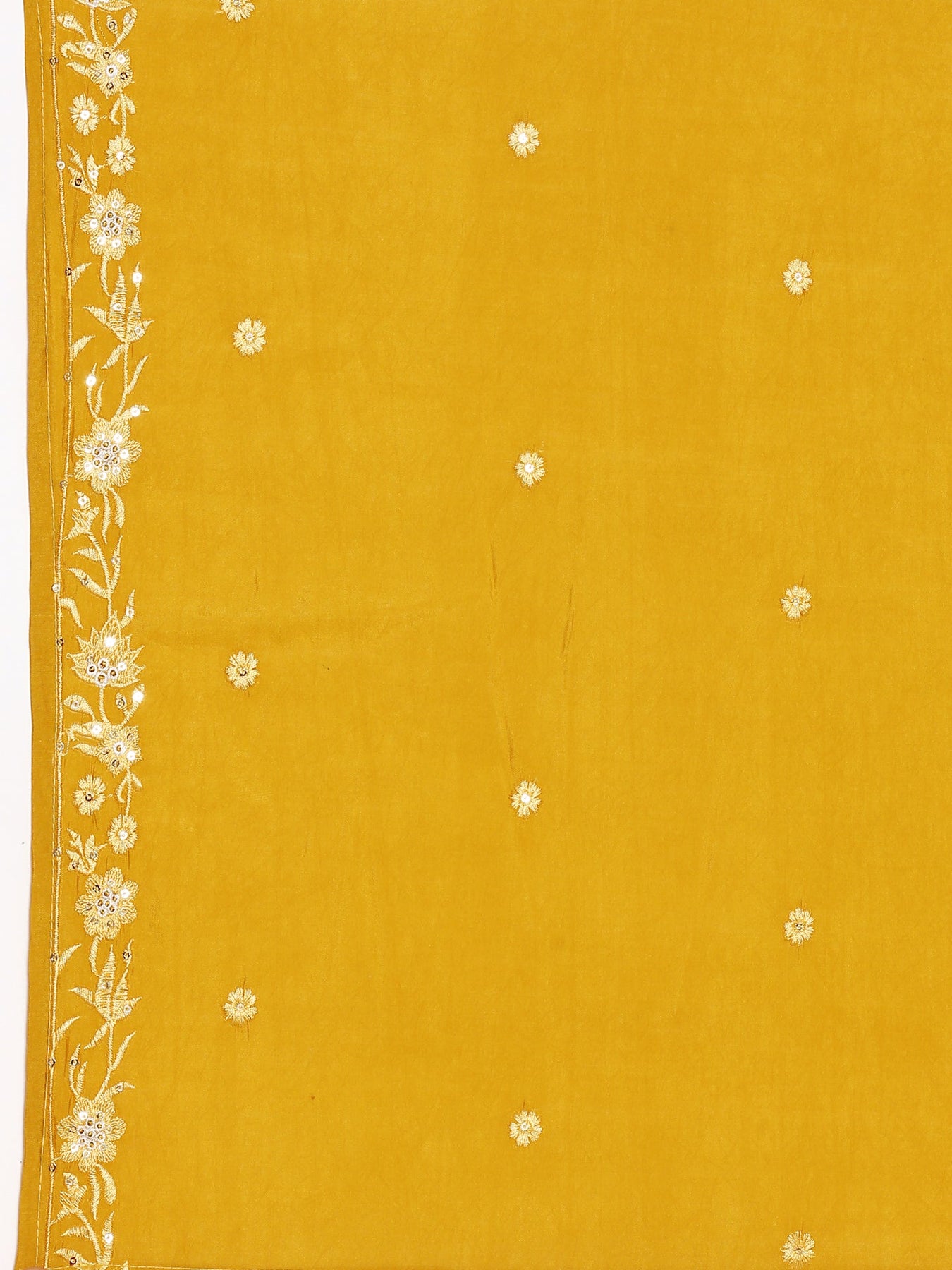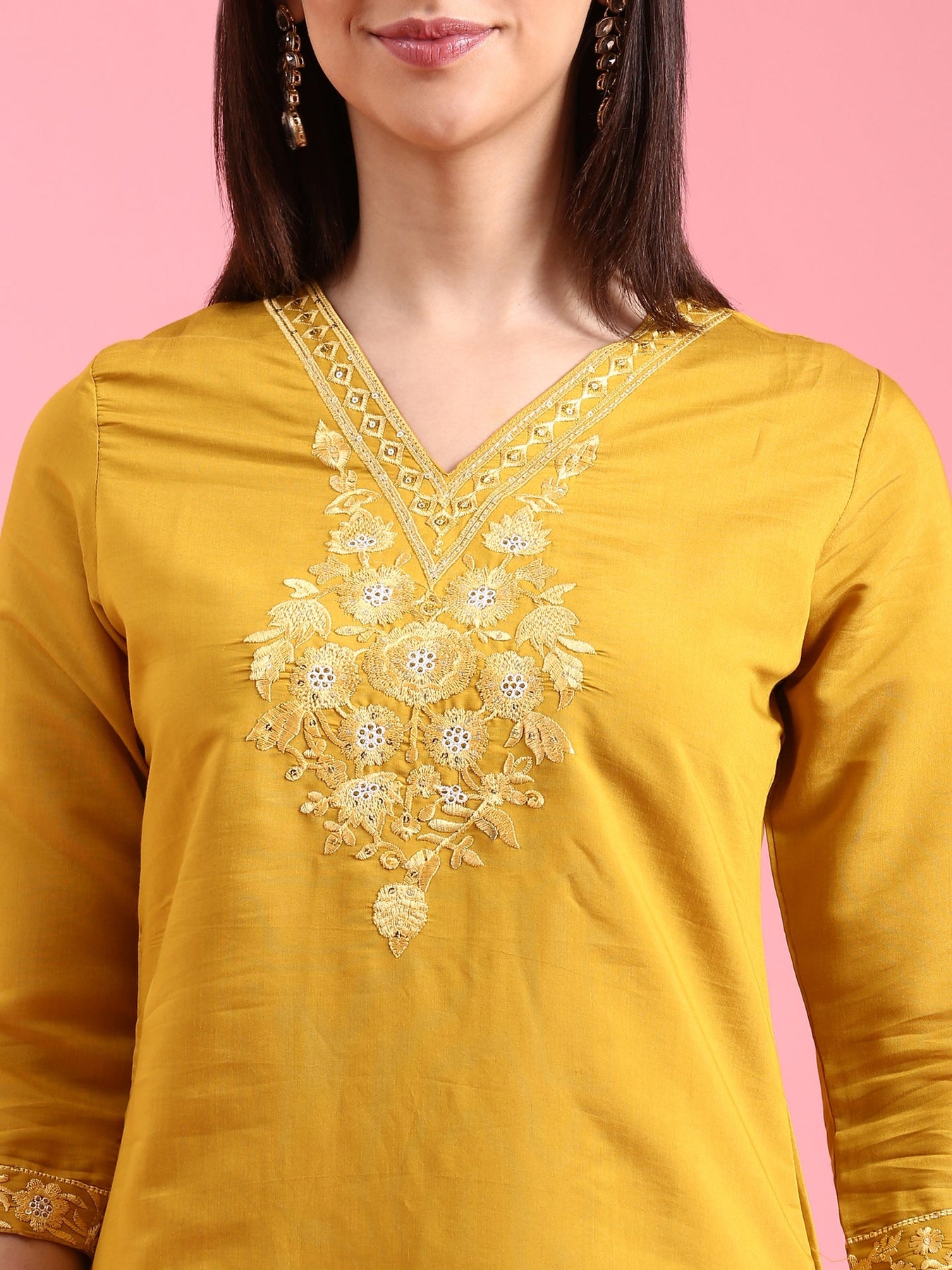 Elevate your wardrobe with this Mustard Modal Silk Embroidery Three Piece Suit Set, combining luxurious modal silk fabric with intricate embroidery for a refined look. The set includes a beautifully embroidered kurta, matching bottoms, and a coordinating dupatta, offering comfort without compromising style. Perfect for formal occasions, its rich mustard hue and elegant detailing ensure you stand out with grace and sophistication.