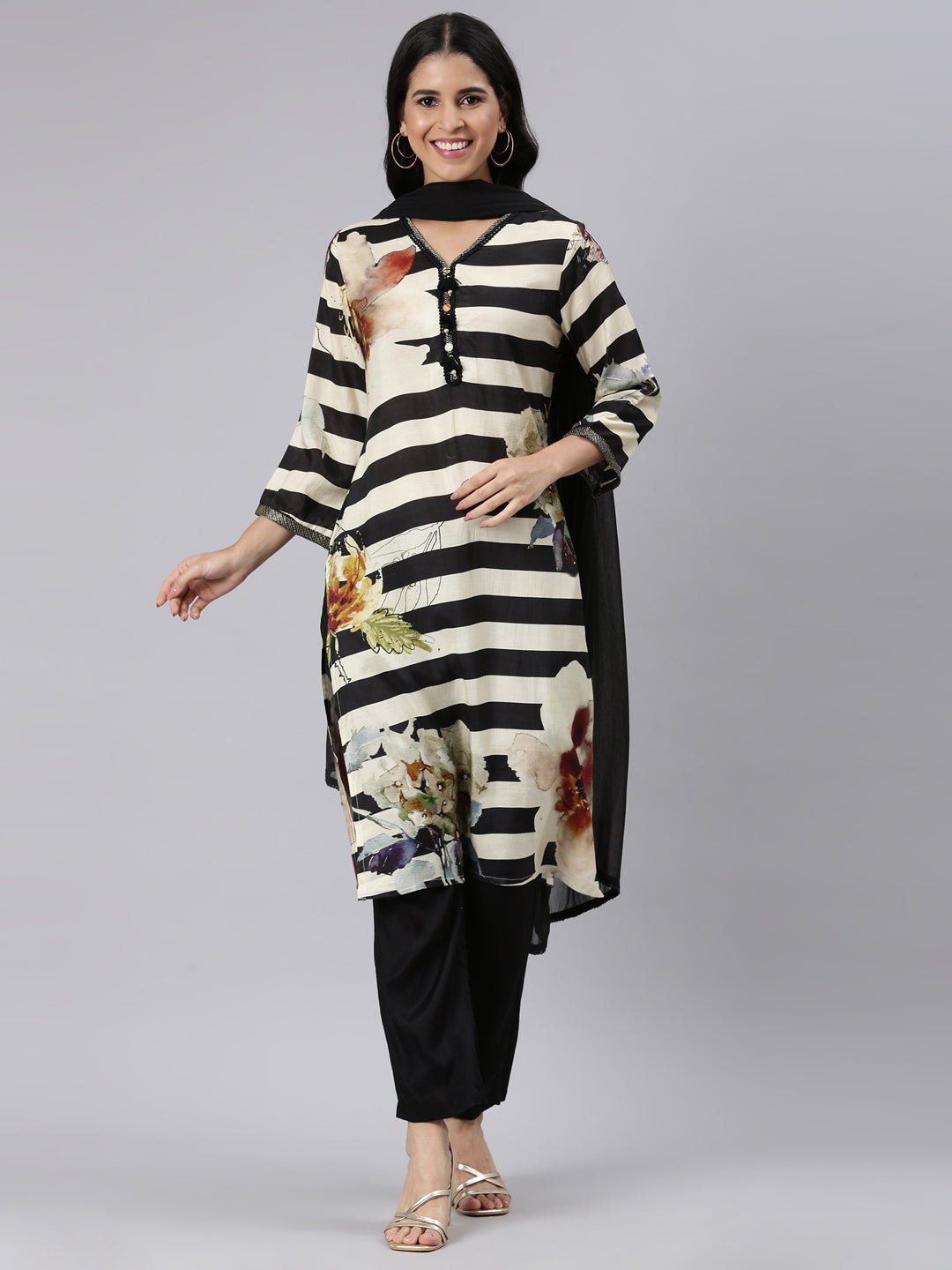 Neerus Beige Regular Straight Printed Kurta and Trousers With Dupatta Keep your style on point with this Neerus Beige Regular Straight Printed Kurta and Trousers Set. This set includes a matching dupatta for a complete, elegant look.