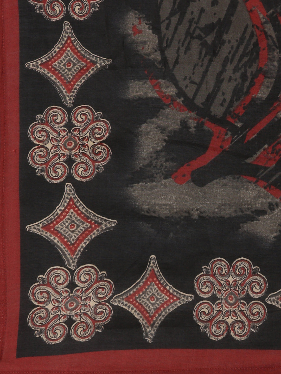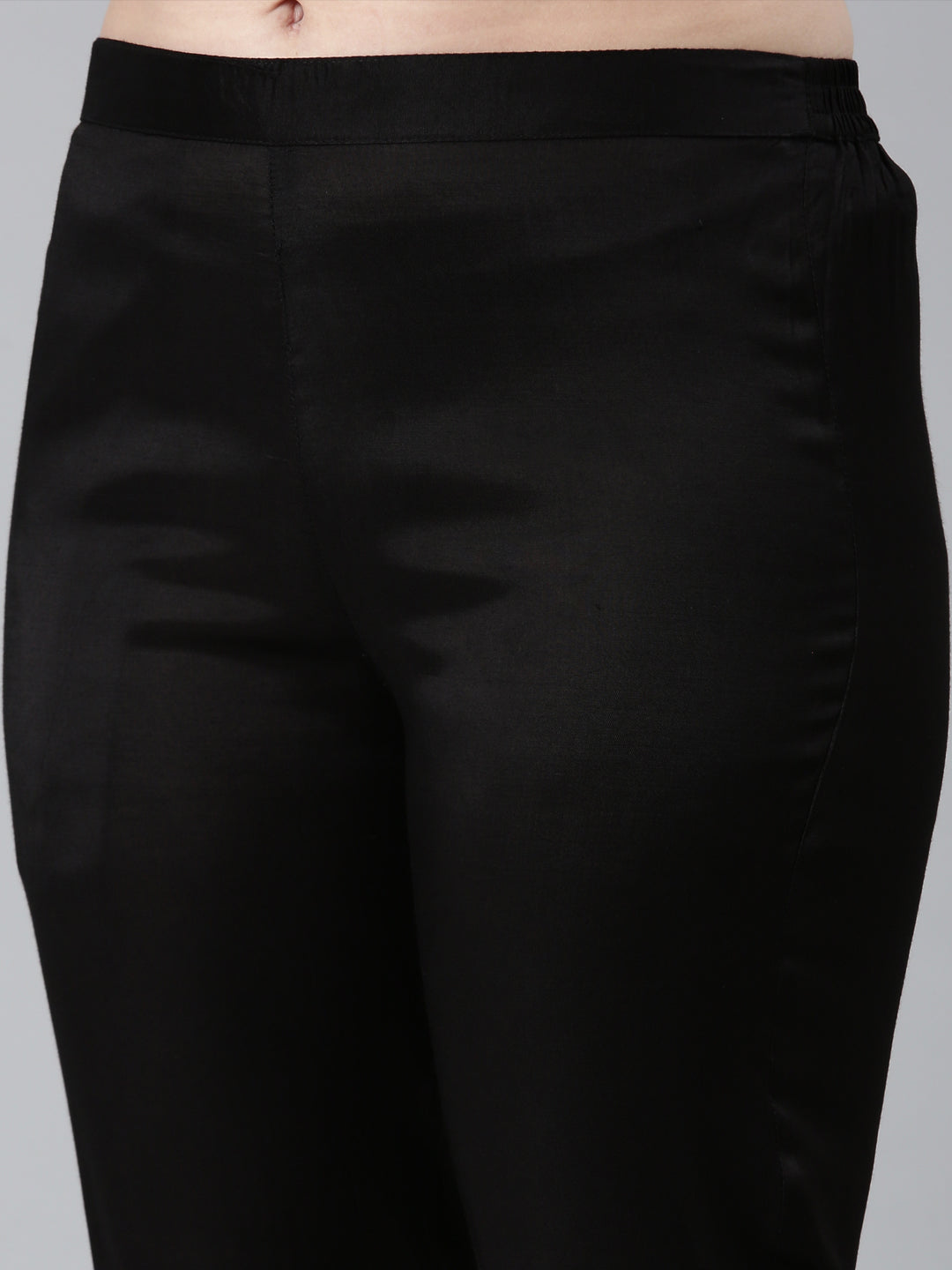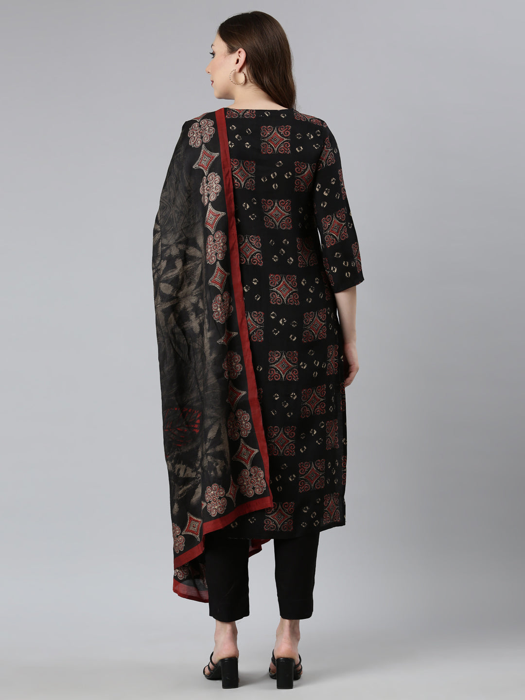 Neerus Black Regular Straight Geometric Kurta And  Trousers With Dupatta