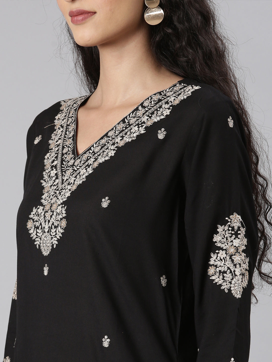 Neerus Black Straight Casual Solid Kurta Sets Elevate your casual wardrobe with this striking and versatile set. Perfect for any occasion, this kurta set offers effortless style and comfort all day long.
